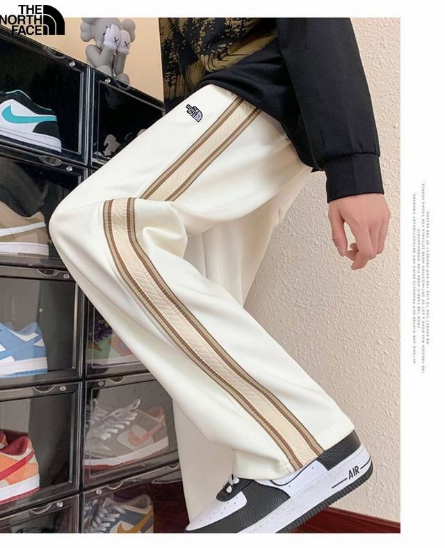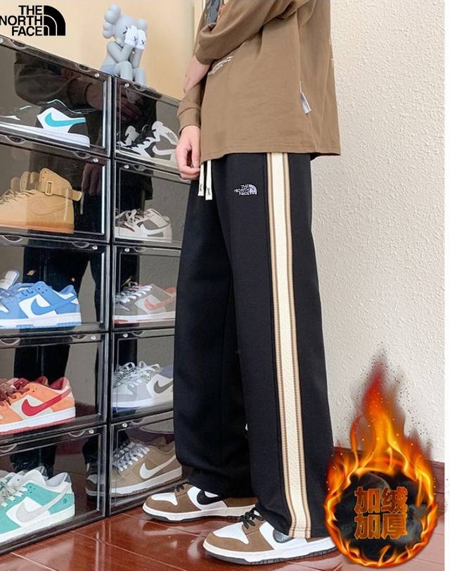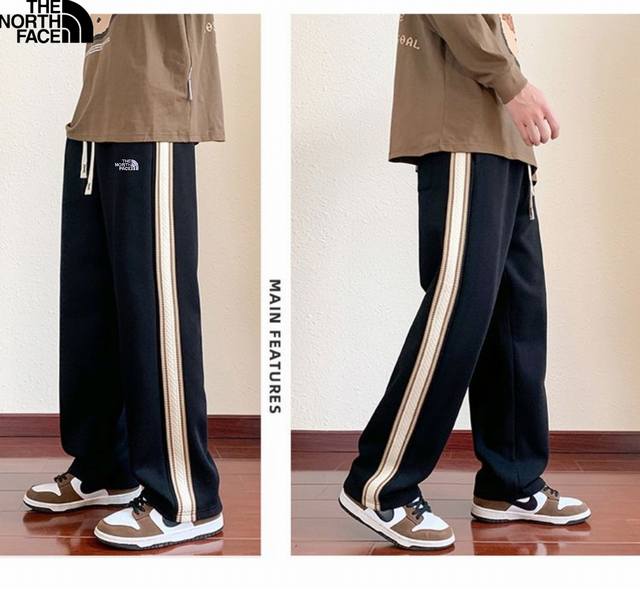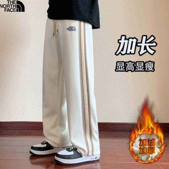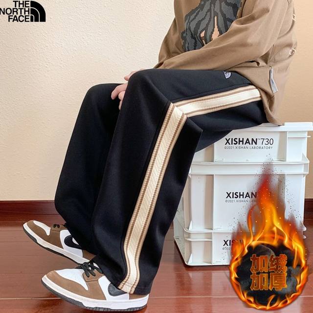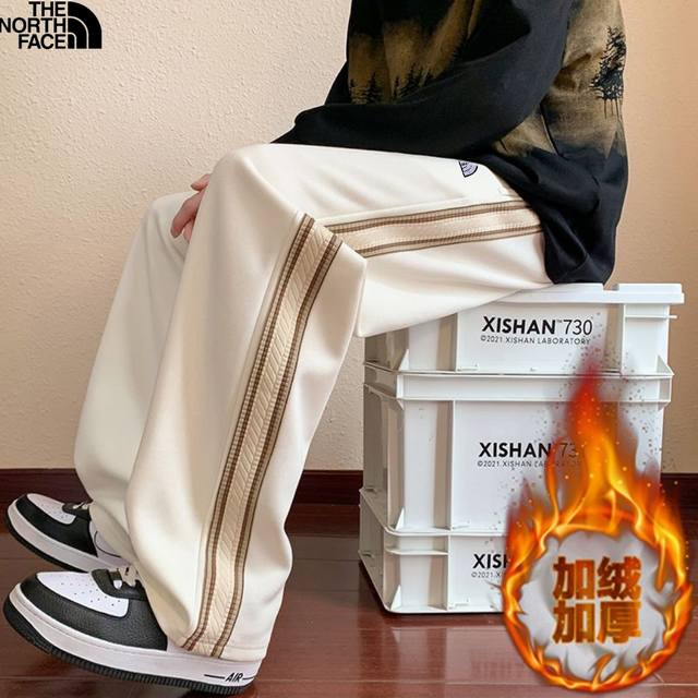 The North Face 25Ss Fall/Winter New Arrival, Stylish Patchwork Custom Fleece Lined Thickened Versatile Side Webbing Casual Long Pants Floor-Length Pants, Unisex Sweatpants Straight Leg Pants