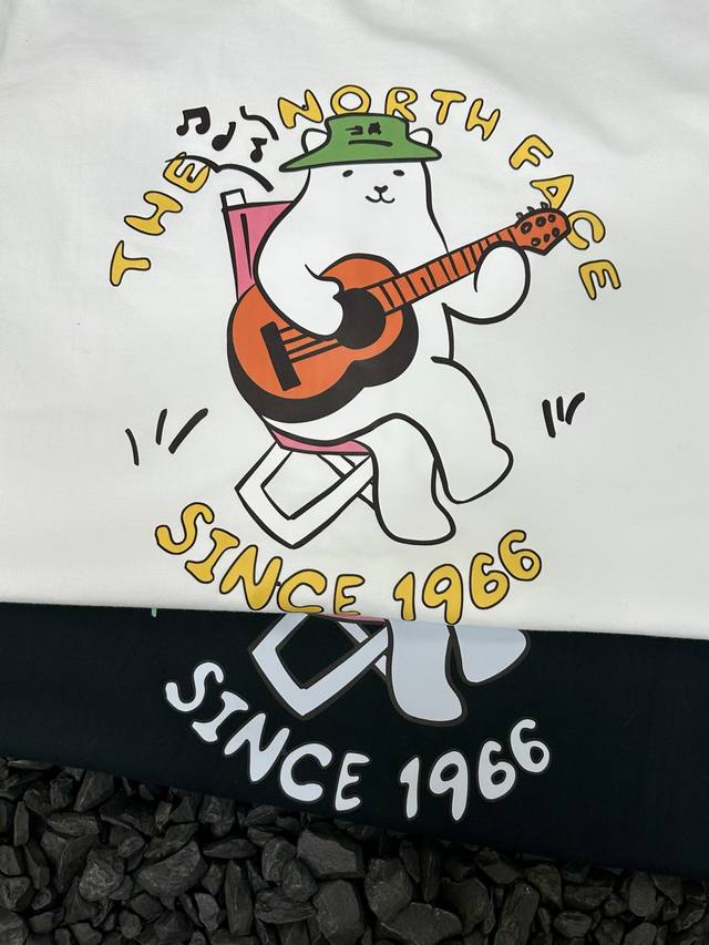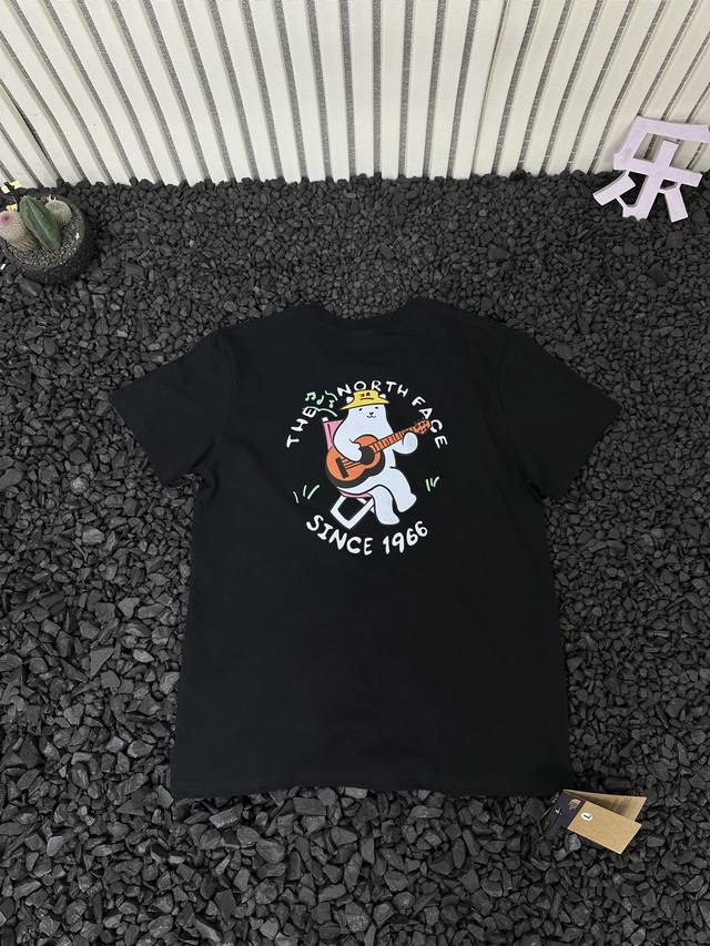 The North Face New summer product, high-quality, loose casual short-sleeved T-shirt with a cartoon guitar and kitten pattern on the back and a large graffiti print, couple style