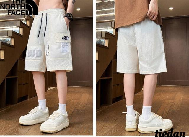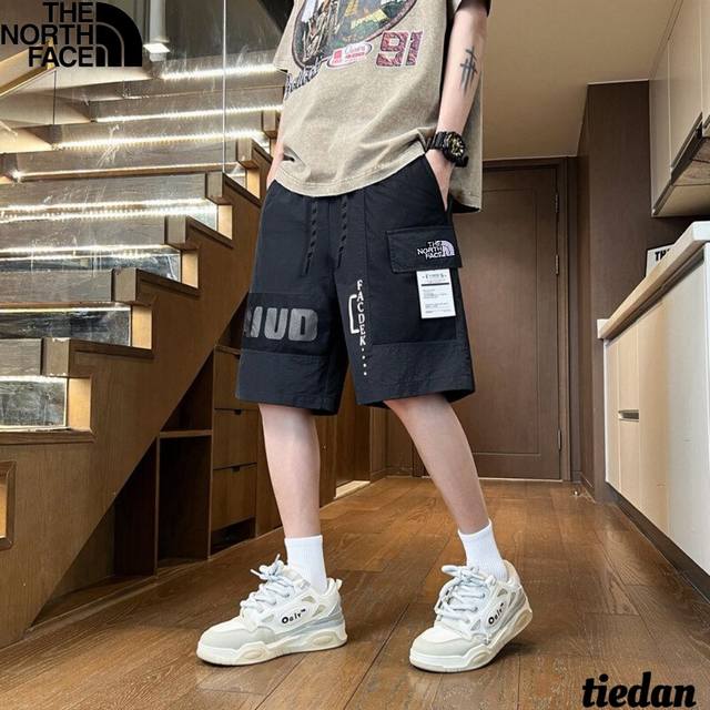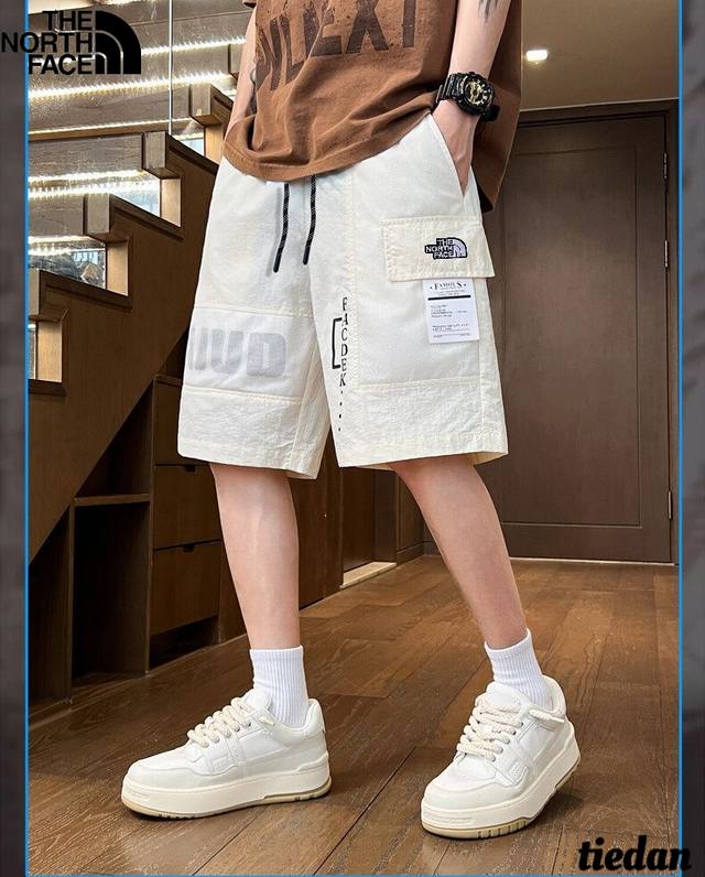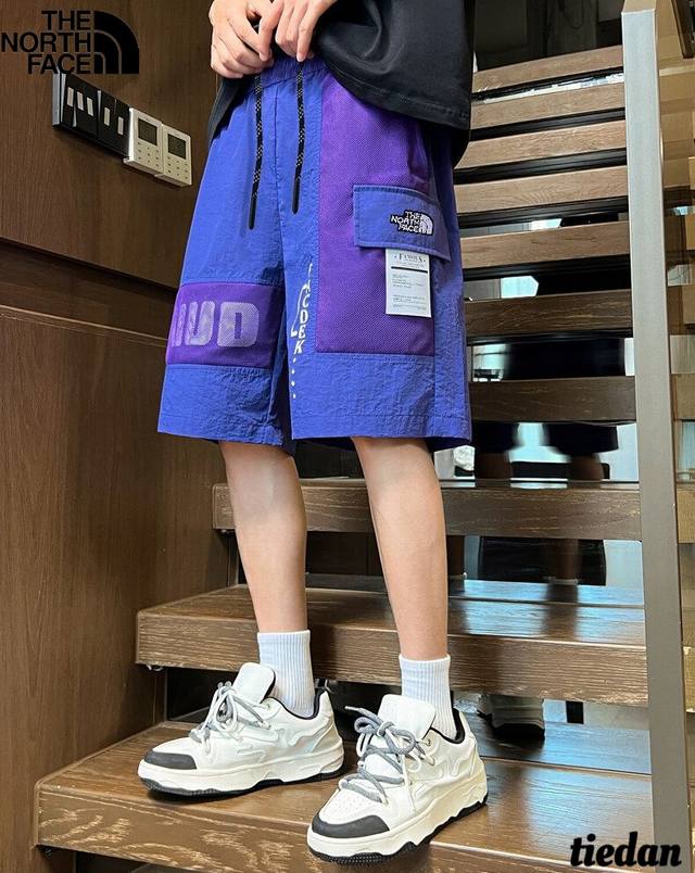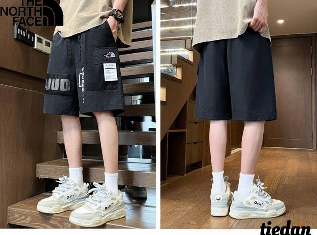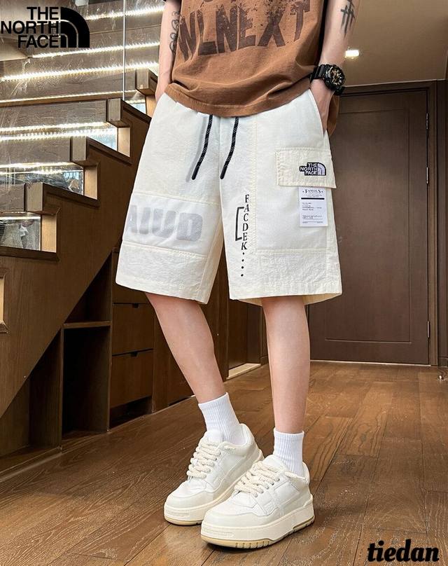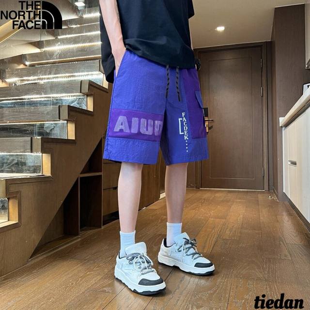 The North Face new summer style, unisex elastic waist contrast color stitching letter printing all-match trendy outdoor workwear casual shorts, men's shorts!