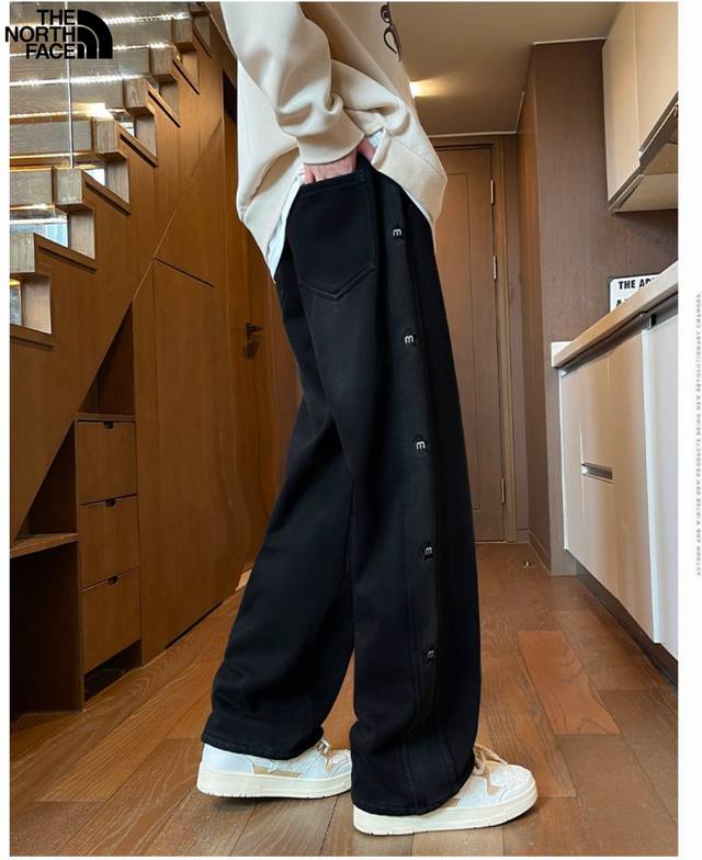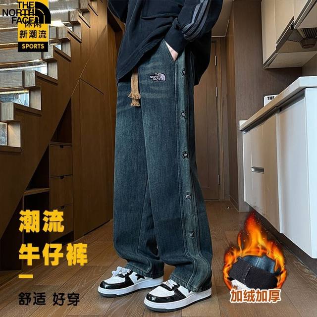 The North Face Winter New Arrival, Unisex New Two-Color Label Heavy Washed Fleece Lined Thick Jeans, Men's Straight Leg Pants! DDD Loose Fit, Perfect Details, Washed Denim Fleece Lined Thick Fabric, Wear-Resistant and Stain-Resistant, Three-Dimensional Cut, Loose Fit, Imported Machine Print, Repeated Washing Will Not Crack or Peel, Unisex Couple Style DDD Colors: Black, Denim Blue DDD