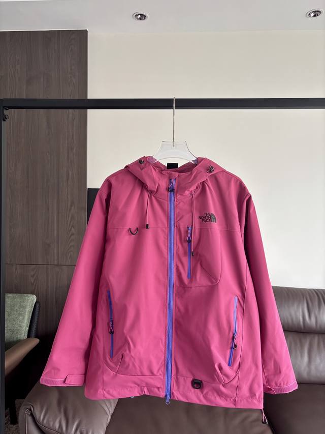The North Face's new printed hooded jacket is the best quality, available now! This jacket is sure to turn heads! Made from breathable, water-repellent fabric for added comfort. With a loose fit, it's a must-have for fall! This versatile and timeless jacket is perfect for men, women, and children! The stylish color combination is perfect for couples!