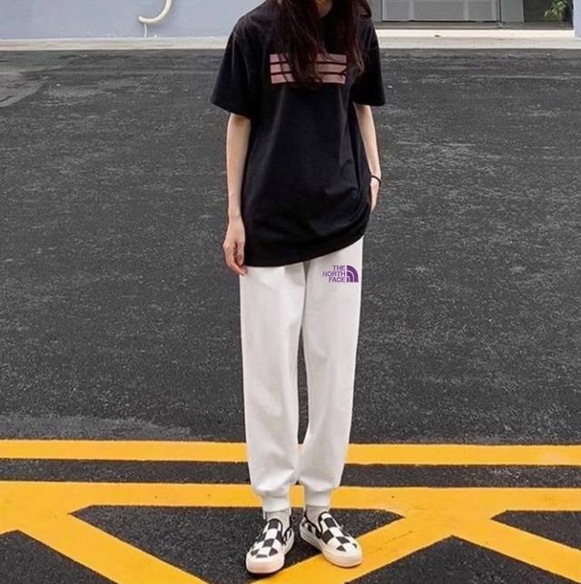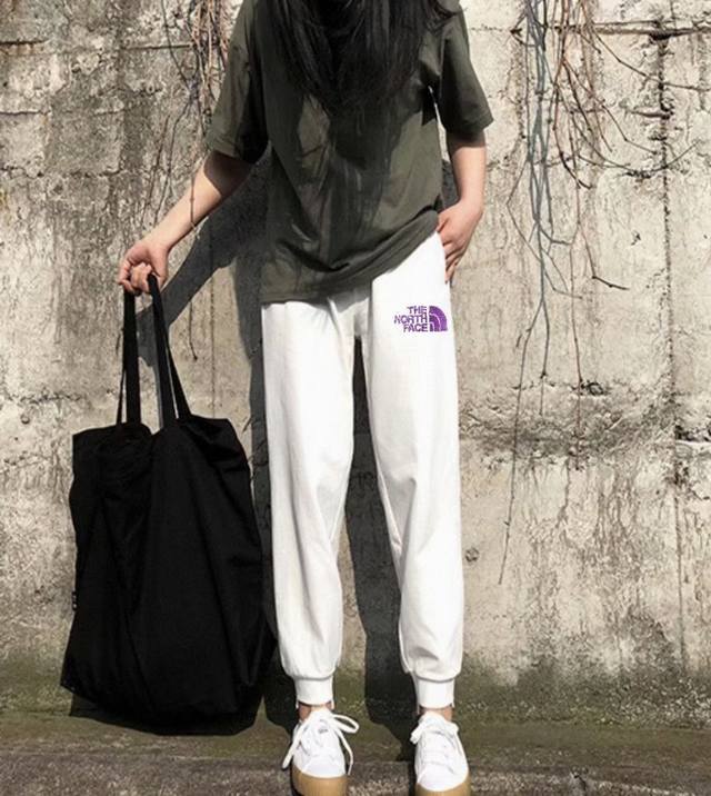 The North Face's super versatile purple small-label ribbed sports sweatpants for spring and autumn, cropped pants, casual pants