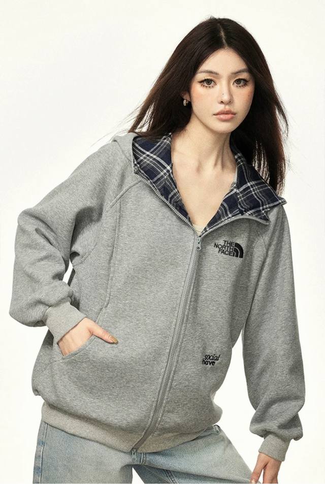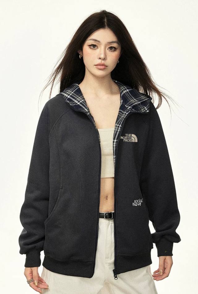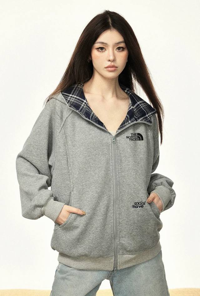 Thenorthface plaid contrasting hooded cardigan sweatshirt, a luxurious, loose-fitting, casual jacket with trendy American retro-style drop-shoulder stitching. Unisex style with a high-street casual silhouette and dropped-shoulder sleeves. This jacket is made of ultra-soft cotton and is incredibly stylish! The material resists pilling, deformation, fading, shrinkage, and is breathable and comfortable!