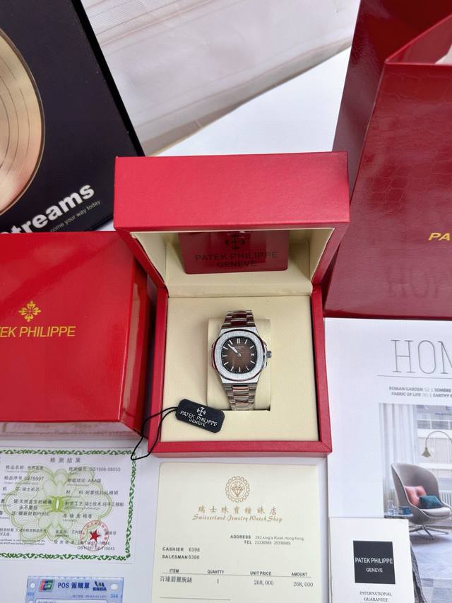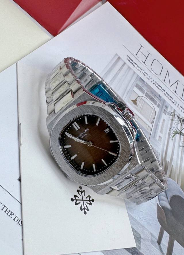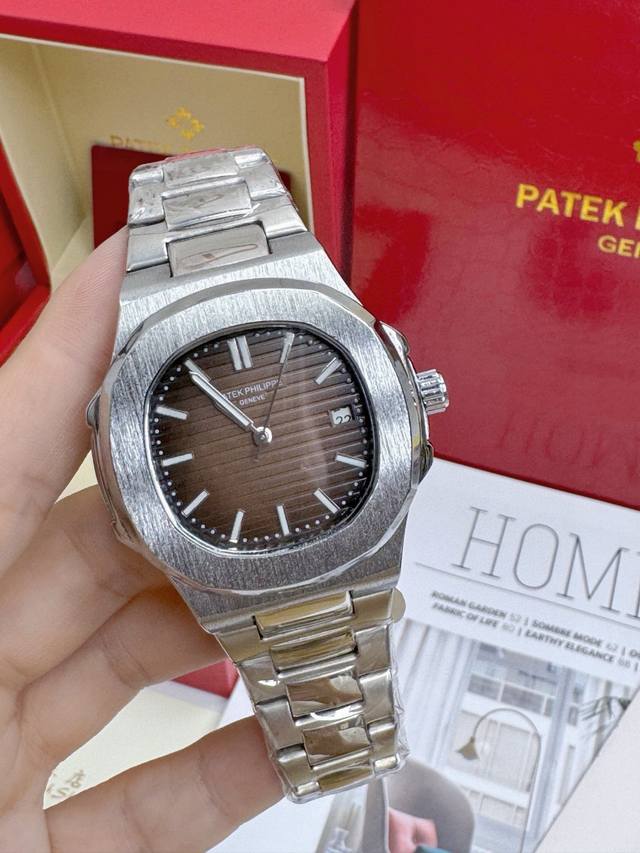 Patek Philippe mechanical watch with brown dial, steel strap and brown surface, full set of counter packaging - Patek Philippe Nautilus PP shocking product, the best and most detoxifying luxury watch on the Internet, built-in fully automatic mechanical movement, the strap is made of 316L stainless steel, and the design is made of three beads linked together. The diamond in the steel strap is a stone-shaped one combined with the positive product. The case size is 36 mm in diameter, emitting a strong youthful and steady atmosphere from the inside out. It is a well-deserved super cost-effective steel watch king