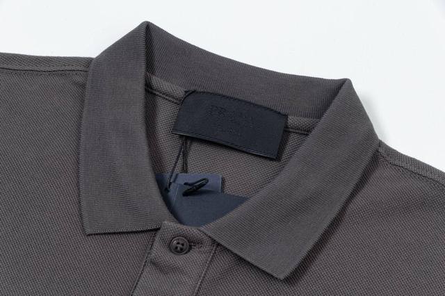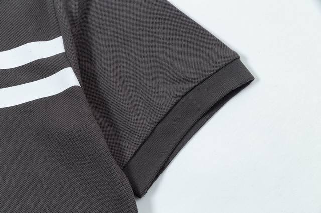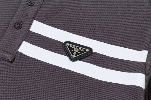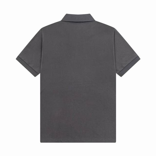 The pique short-sleeved Polo shirt combines classic lines and details, with contrasting color stitching and metal badges to highlight fashion charm.