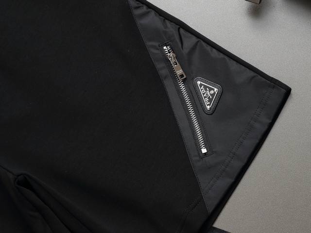 High-end Prada 2025 Spring and Summer new elastic casual shorts, custom-made fabrics are breathable and comfortable, with impeccable details, brand element design concept, and high quality. Delicate and soft to the touch! Casual cut, great fit!