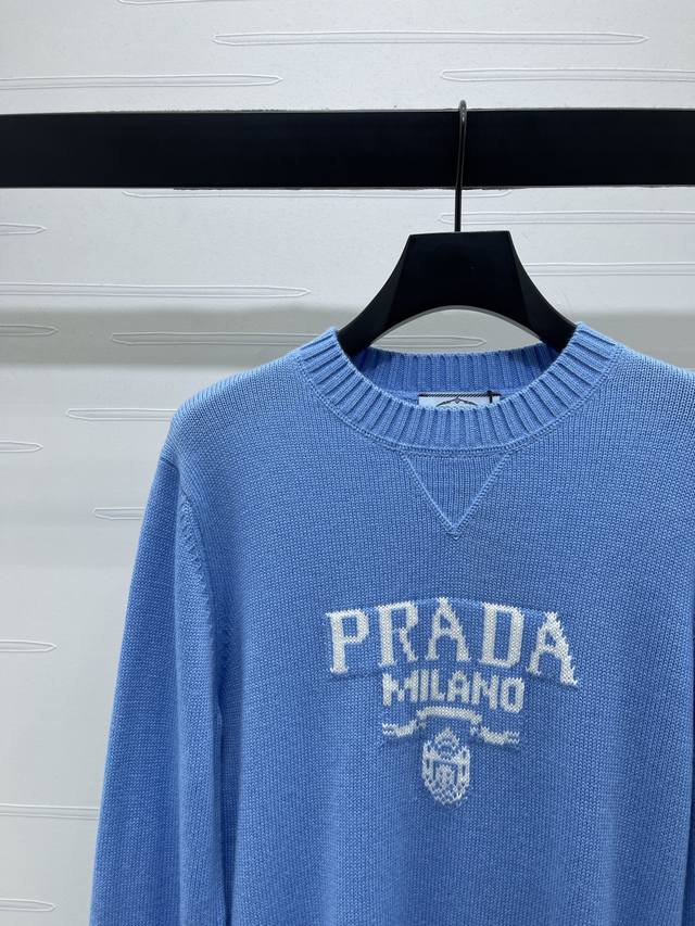New Arrival! High-Quality Original Prad* 2025 Autumn/Winter Collection! Letter Crew Neck Pullover Sweater! Custom imported wool material, high-quality, comfortable and soft. Wide ribbed trim on the neckline and cuffs echoes the hem, adding a sense of style and layering. The iconic letter logo on the chest embellishes the design, showcasing the brand's identity. The developed crew neck long-sleeved sweater cut creates an artistic and versatile look! Available in 2 colors! Sizes SM-L3! High-quality bulk order.