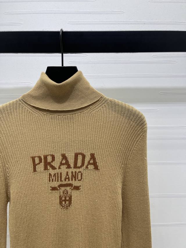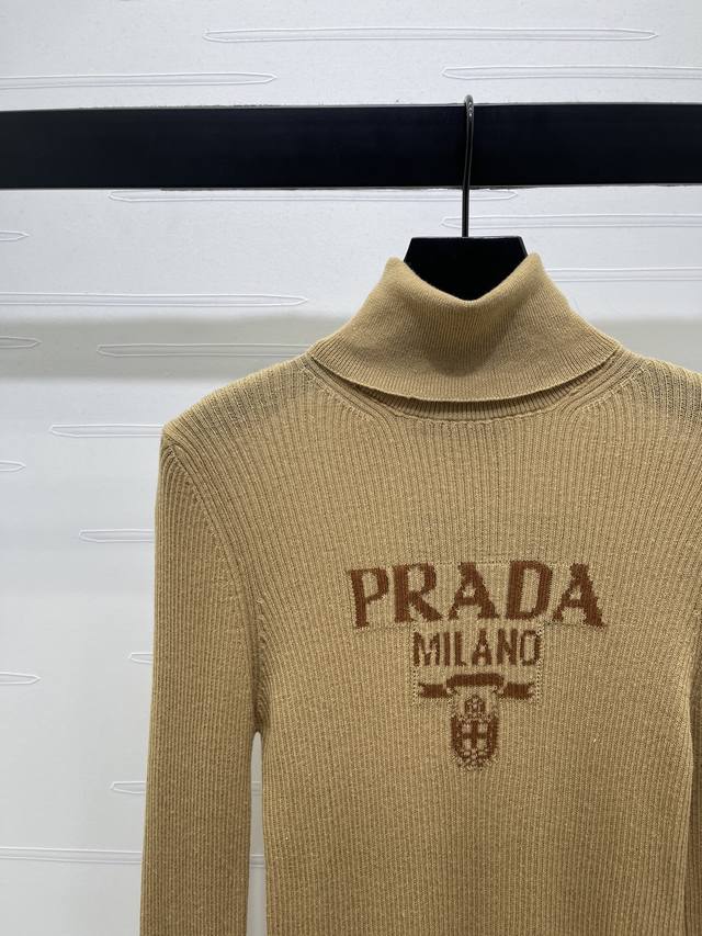New Arrival! High-Quality Original Prad* 2025 Autumn/Winter Collection! Slim Fit Knitted Turtleneck Base Layer! Custom-made wool material, comfortable and highly elastic. Slim fit, contrasting letter logo on the chest highlights brand style. Ribbed edges on the neckline and cuffs echo the hem. Excellent elasticity and a flattering, elongating effect, creating a slimming and feminine silhouette. Stylish and versatile, perfect for wearing alone or layering! 4 Colors! Sizes SM-L3! High-quality bulk order.