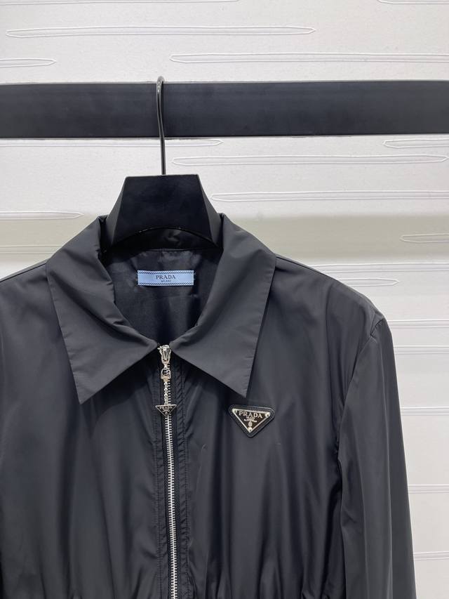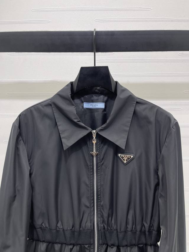 New arrival, original, high-quality Prad* from the latest 2025 Early Fall collection! This waisted, lapel-neck, long-sleeved dress is custom-made from imported materials, soft and skin-friendly. The lapel-neck, waisted, long-sleeved dress features tapered cuffs for a snug fit and warmth. It can be worn as either a long coat or a long skirt, offering a stylish and casual look. The solid color complements the chest logo, highlighting the brand's style and flair. The two-way zipper reveals long legs, and the waist-cinching design accentuates curves and creates a perfect proportion. An essential everyday fashion guide! Available in one color! 3 sizes SM-L! High-quality, bulky stock A706B560C