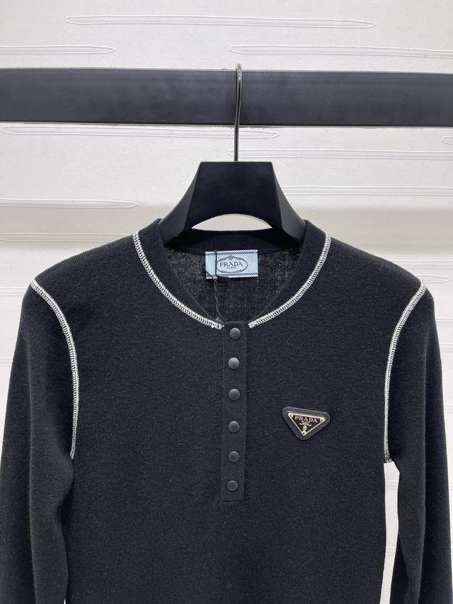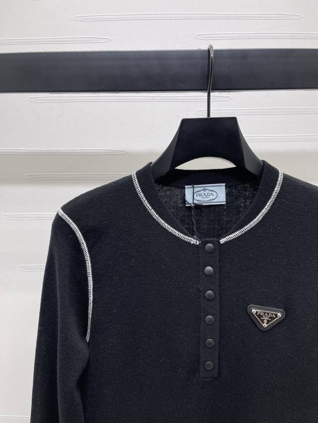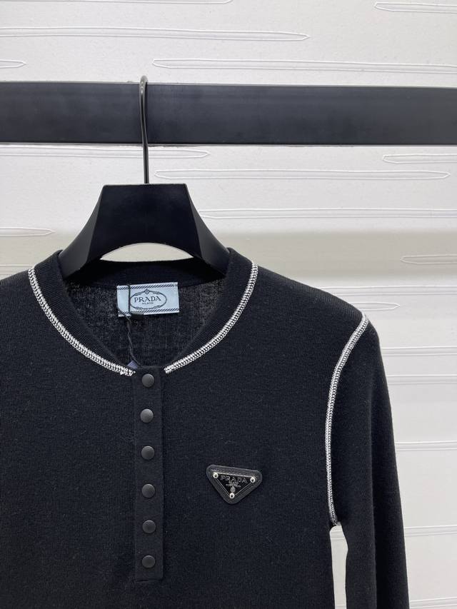 New, original, high-quality Prad* 2025 Early Fall collection! Contrast-colored knit long sleeves! Woven from custom wool yarn, soft and comfortable, stretchy, round neckline, knit long sleeves, and a half-open button collar for adjustable fit, revealing just the right amount of skin, flattering head-to-shoulder ratio, and creating a slimming effect. Contrast stitching creates a rich, layered look, and the slim fit accentuates your figure, making you look playful and youthful! Available in two colors! Sizes SM-L3! High-quality, bulky stock A706B350C