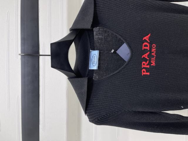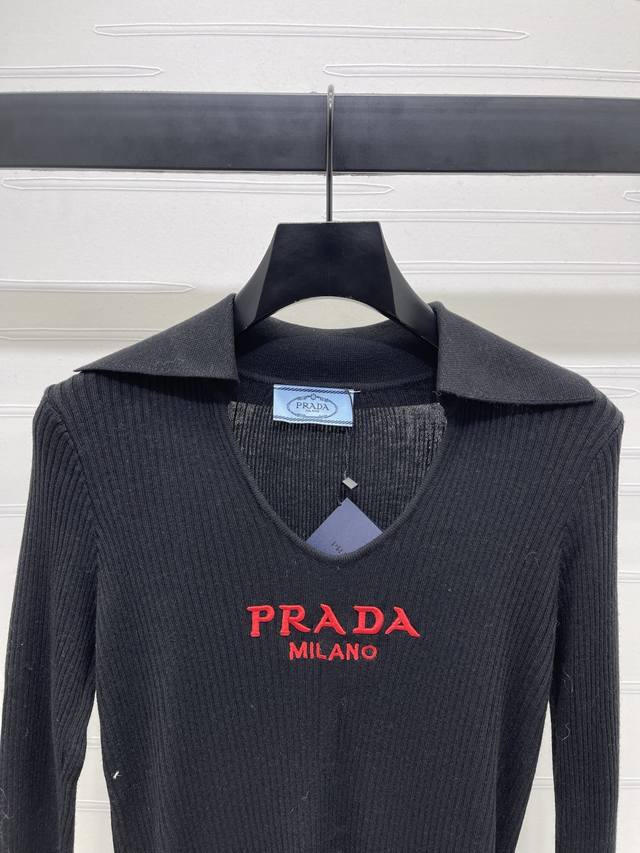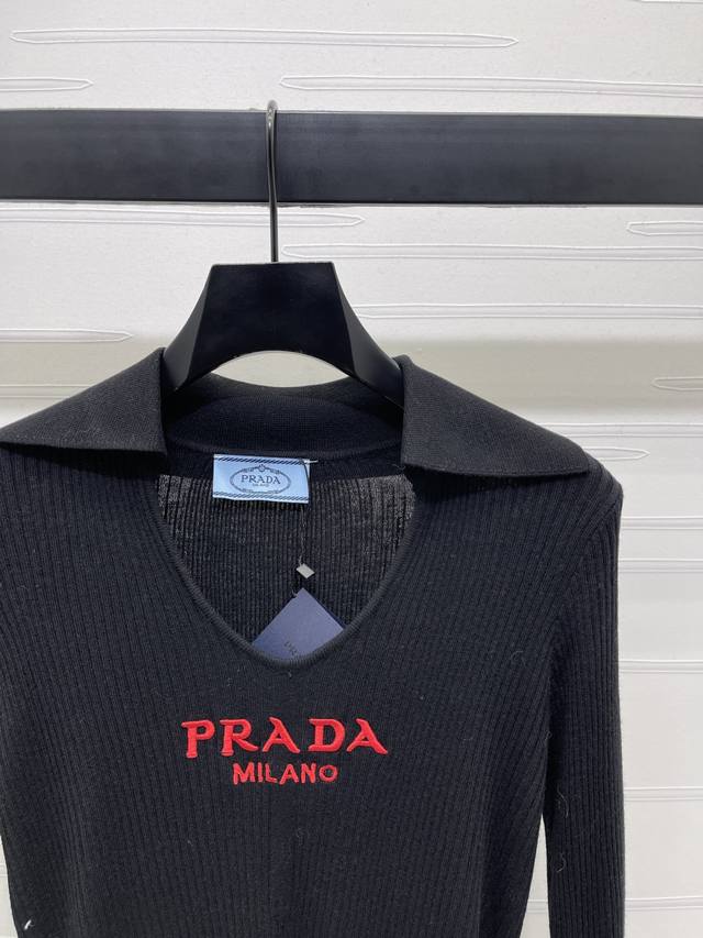 New, original, high-quality Prad* 2025 Early Fall collection! This lapel, slim-fit, lettered base top is custom-made with a wool knit for a comfortable, stretchy, and wearable feel. The lapel, long-sleeved base top is cut to reveal more skin, elongate the neck, and create a slimmer look. The flared cuffs are flowing and flexible, adding a touch of style. The iconic letter embroidery logo on the chest adds a touch of luxury, breaking away from the monotony of boredom. The stretchy, slim fit is tailored to your body for a slim, sophisticated, and elegant look. It's a great fall/winter innerwear piece for everyday commuting, dating, and casual wear. Available in two colors! Sizes SM-L3! High-quality, large-volume