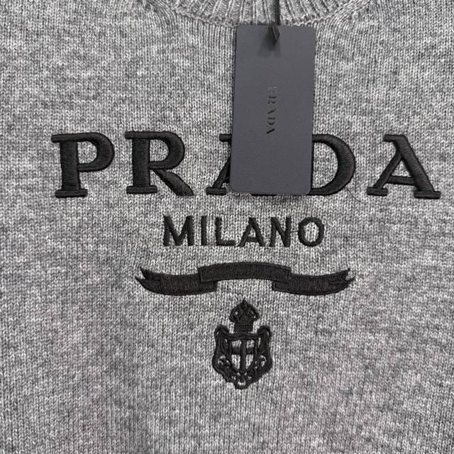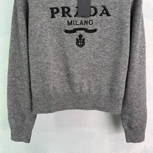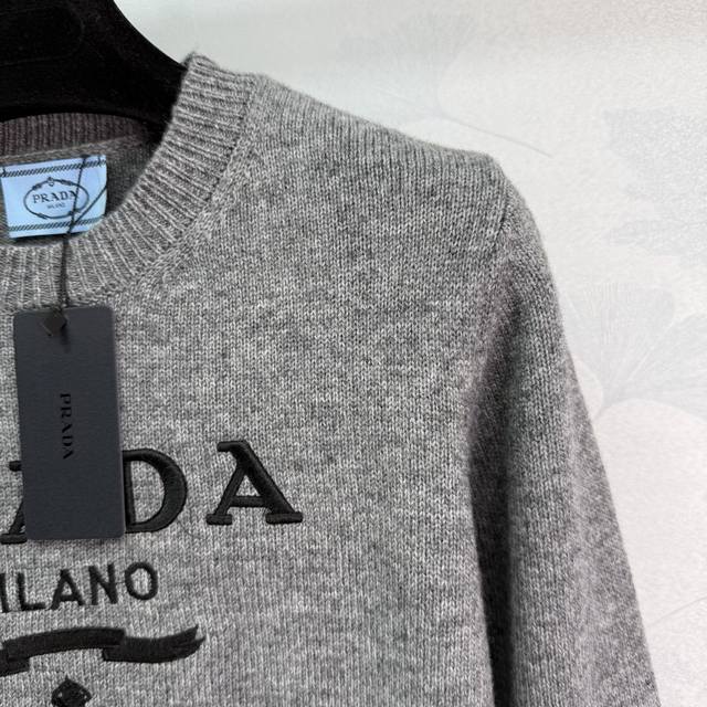 Prad* 2025 Autumn/Winter New Letter Crew Neck Pullover Sweater! Made of custom imported wool, this sweater boasts a premium feel, offering exceptional comfort and softness. The wide ribbed trim on the neckline and cuffs echoes the hem, adding a touch of sophistication. The iconic letter logo adorns the chest, showcasing the brand's style. The round neck and long sleeves, combined with the sweater's tailored cut, create a sophisticated and versatile look. Available in 1 color and 3 sizes: S, M, L, T2, 26, B,