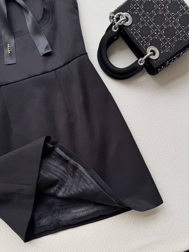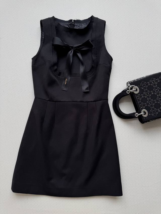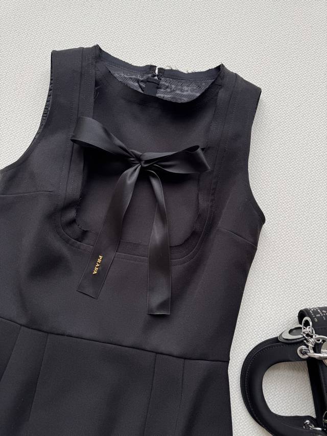 Prad* 2025 Autumn/Winter New Sleeveless Dress with Bow Tie Decoration. Custom brand hardware embellishments add a touch of gentle elegance and design. Youthful yet understatedly luxurious. The fitted waist and flattering cut make it a must-have. Looks great worn alone or layered! Available in one color, sizes S, M, L.