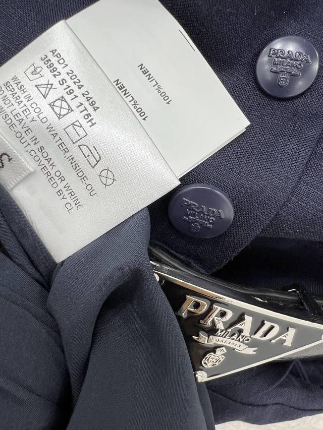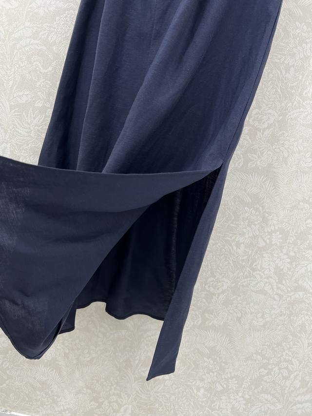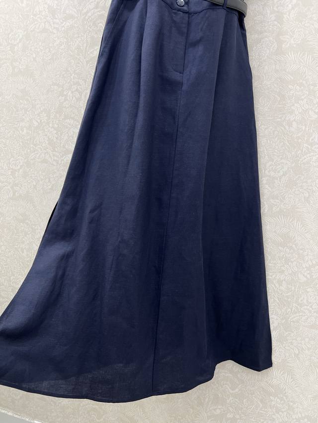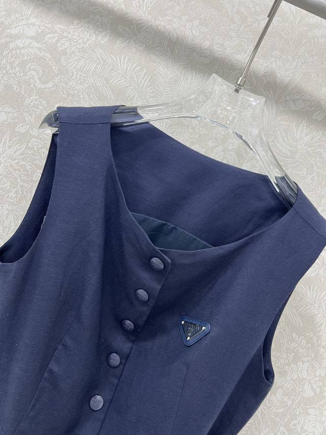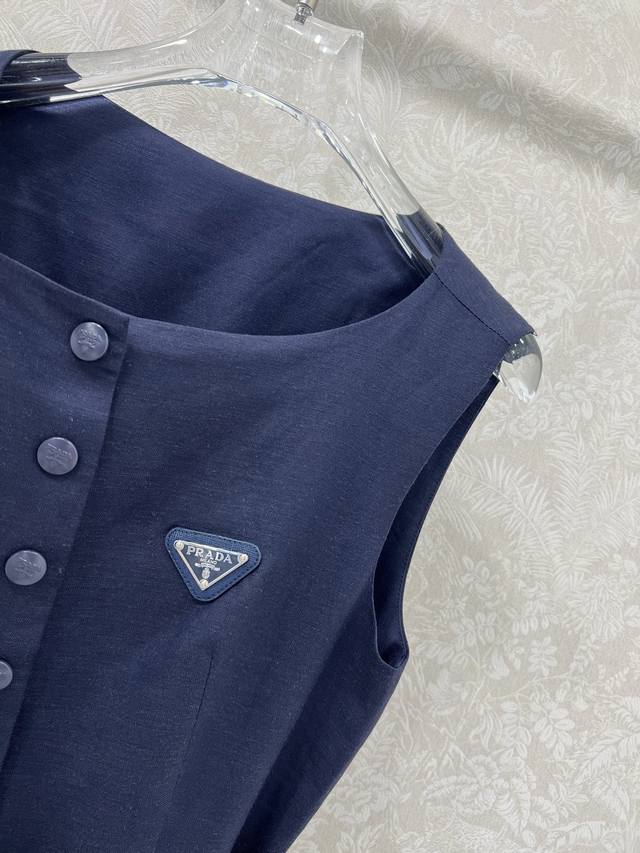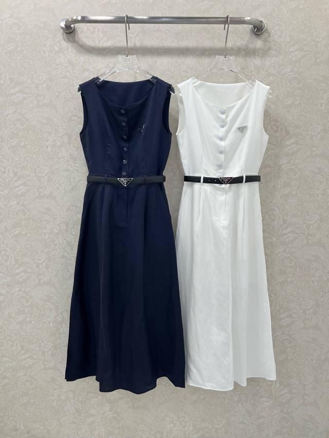Prad* 25 New linen fabric dress Round neck vest Waisted long skirt Customized half-button design on the front Classic triangle logo on the chest Paired with a custom belt Skirt with slits on both sides Can be worn for daily commuting A super practical long skirt that can solve your commuting or daily outings or even vacations A perfect sense of luxury with a belt Waisted and slimming, perfect body proportions, very tall 2 colors and 3 sizes Sml B