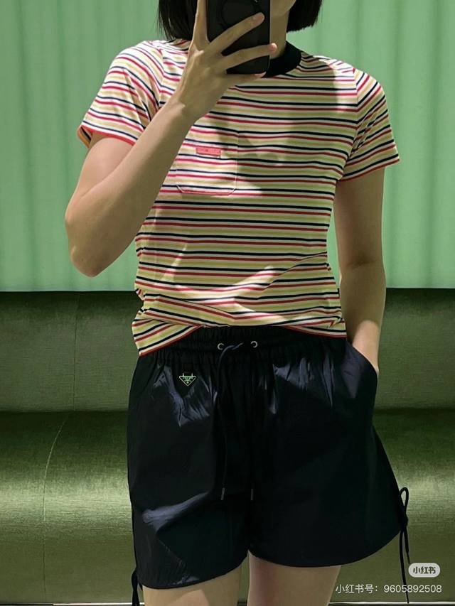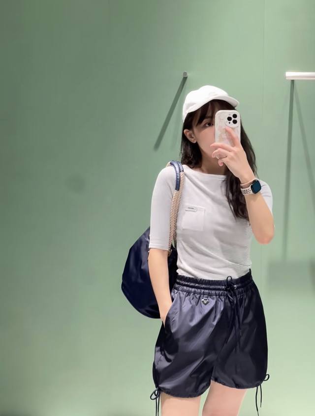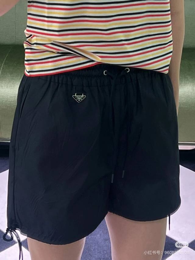 Prad* 25Ss new spring/summer drawstring nylon elastic waist casual shorts. Original design! High-quality product! The nylon fabric is lightweight and breathable. The iconic triangle logo is simple and eye-catching. Pair it with any casual style and you'll be a true street style stylist. Highly recommended! Perfect workmanship and quality are reflected in the details. Available in black and navy blue. Sml