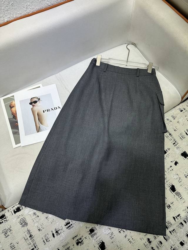 / Prad* 25Ss new style skirt with large pockets, triangle logo decoration, fine wo