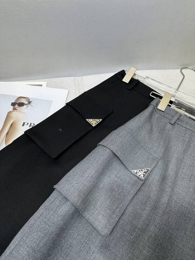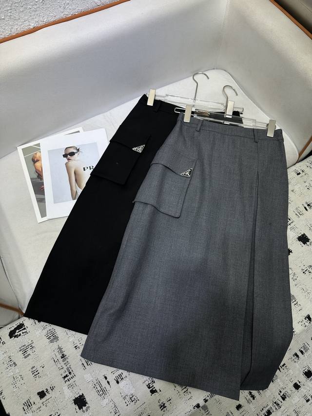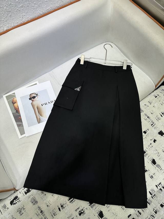 Prad* 25Ss new style skirt with large pockets, triangle logo decoration, fine workmanship, high quality, two colors, three sizes, Sml
