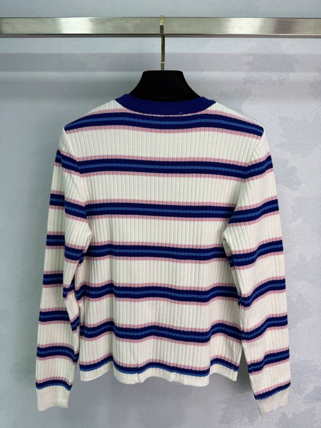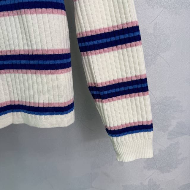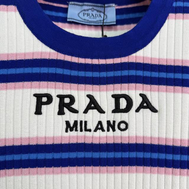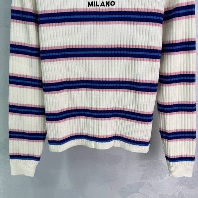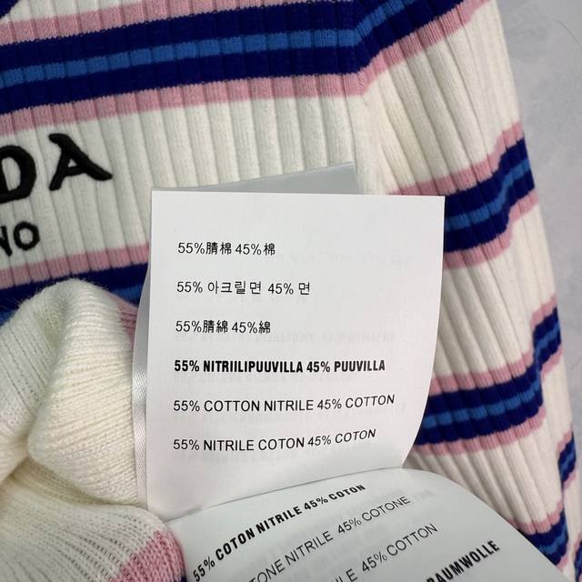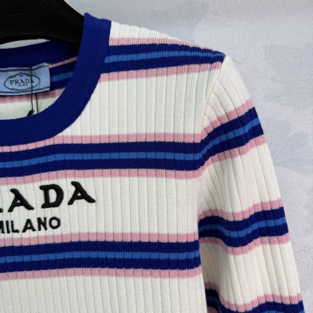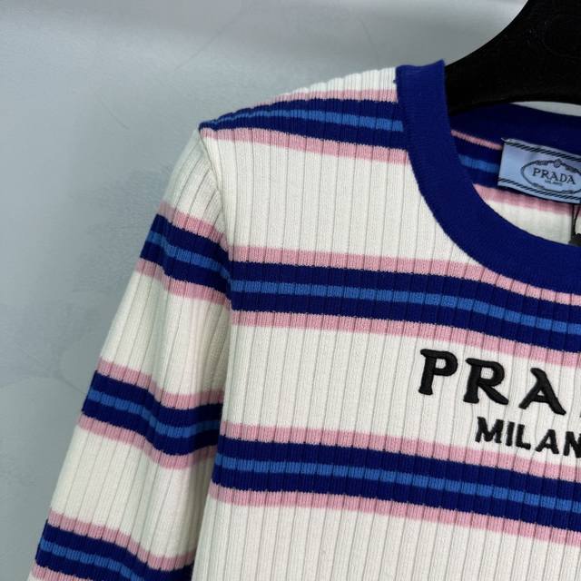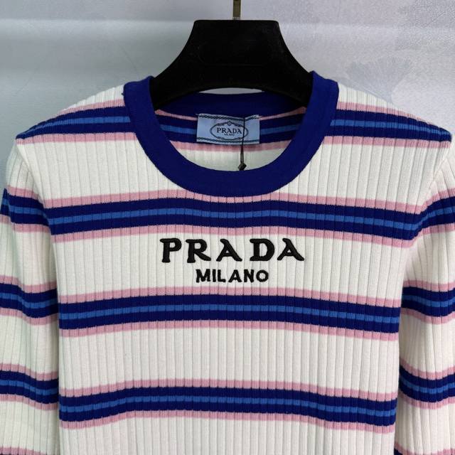 Prad*2025 Early Autumn New Round Neck Striped Knit Long Sleeve! Made with custom wool yarn, this high-quality, comfortable knit long sleeve features a striking color-blocked stripe design that highlights the brand's personality and exudes a sophisticated feel. The vertical ribbed trim adds a touch of personality to this simple style, creating a relaxed and stylish look. The embroidered logo adds a touch of understated luxury. Perfect for wearing alone or layering, this is a must-have for all seasons! Available in 1 color and 3 sizes: S, M, L, D, D.