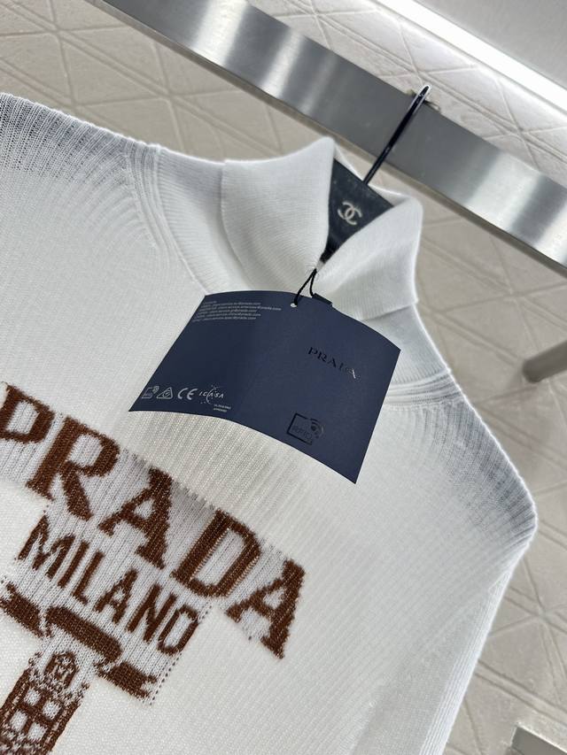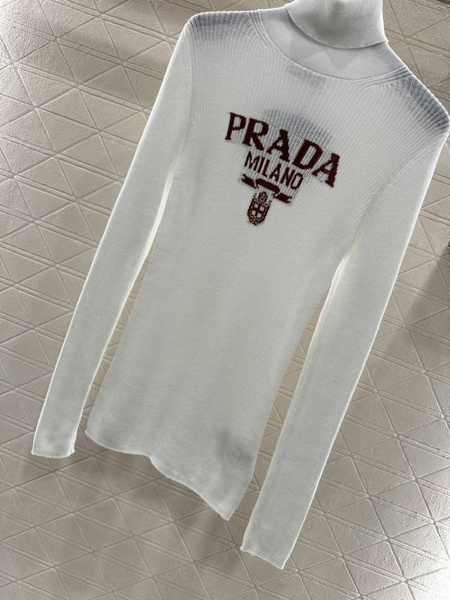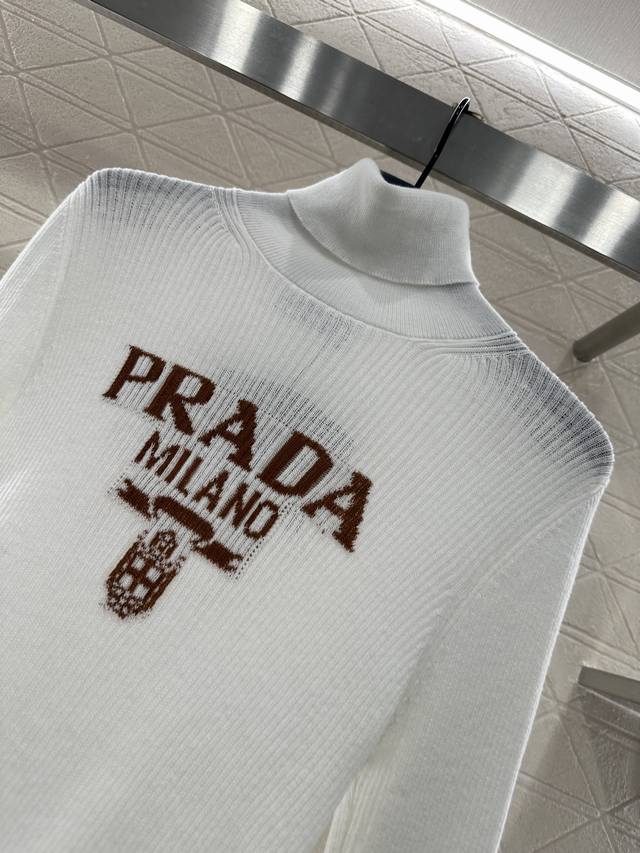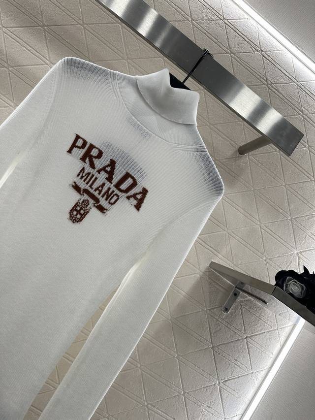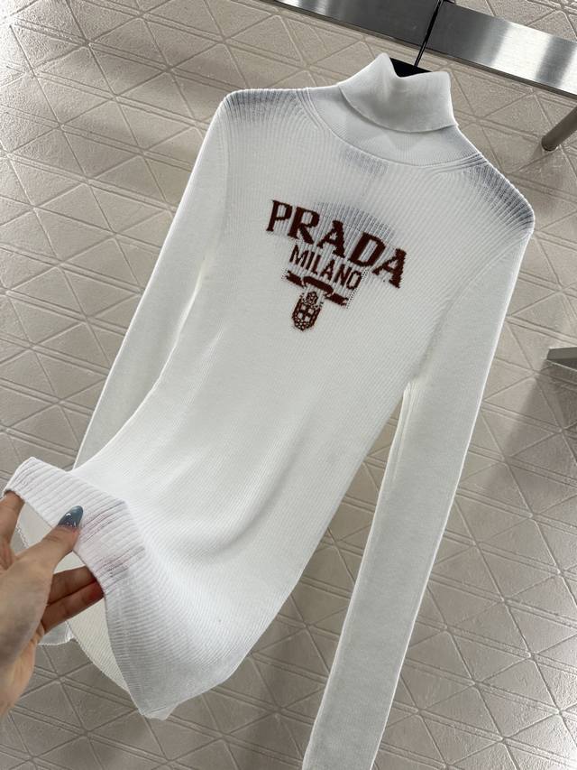 Prad*2025 New Arrival Letter Logo Knitted Turtleneck Sweater. Made with custom Y