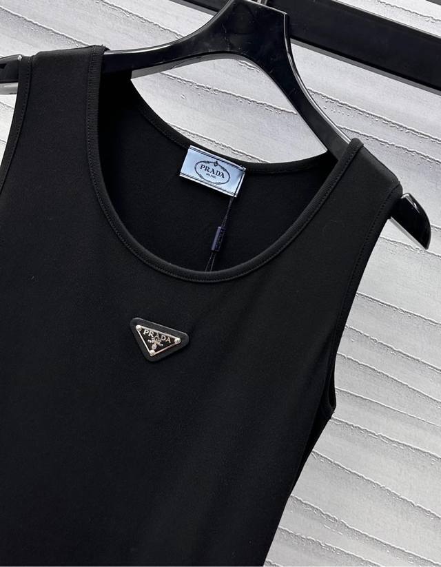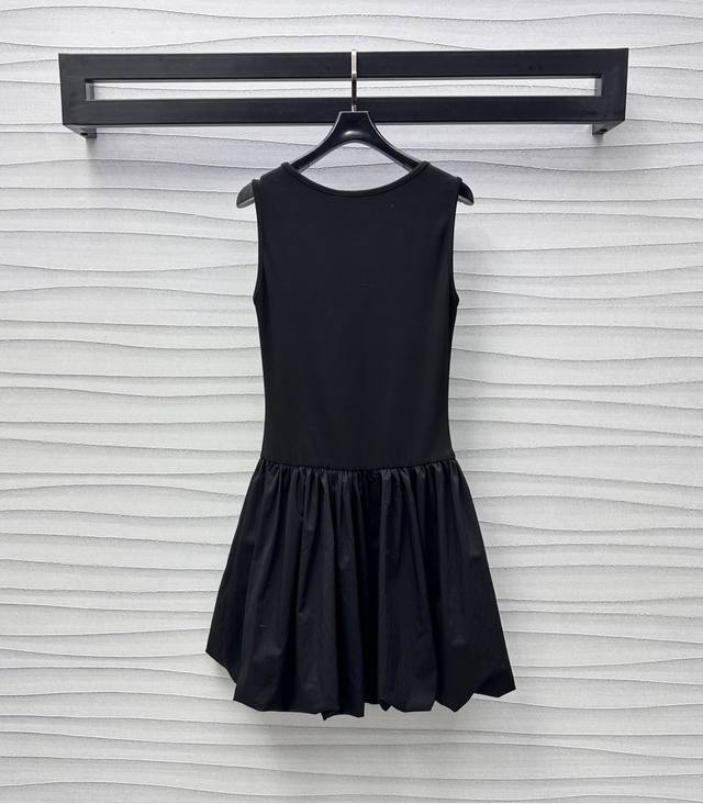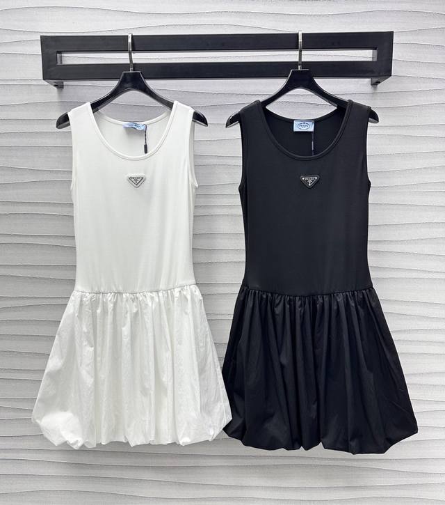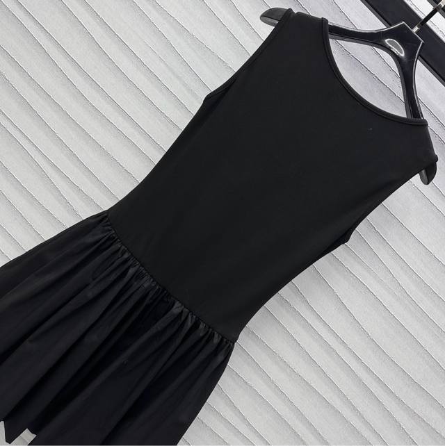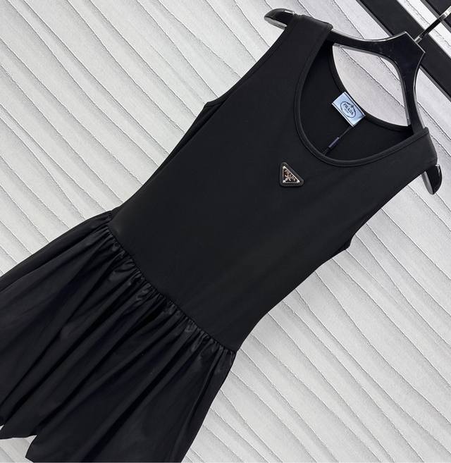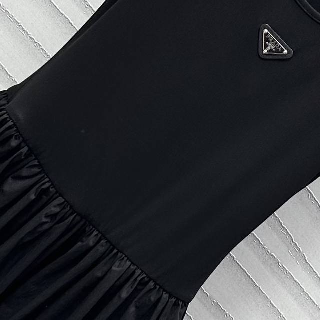 Prad*2025 New arrivals Waisted patchwork vest dress Customized Yb imported twill cotton patchwork material Glossy and comfortable Drape The iconic triangle logo decoration on the chest highlights the brand tone Upper and lower patchwork fabric design Layered cake swing Waisted and hip-covered Outline curves to accommodate the figure and make it look slimmer The hem is cut to modify the leg lines and add a sense of layering to the shape Surface and auxiliary materials development Sleeveless dress tailoring for commuting, dating, and age-reducing and fashionable