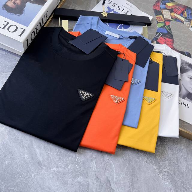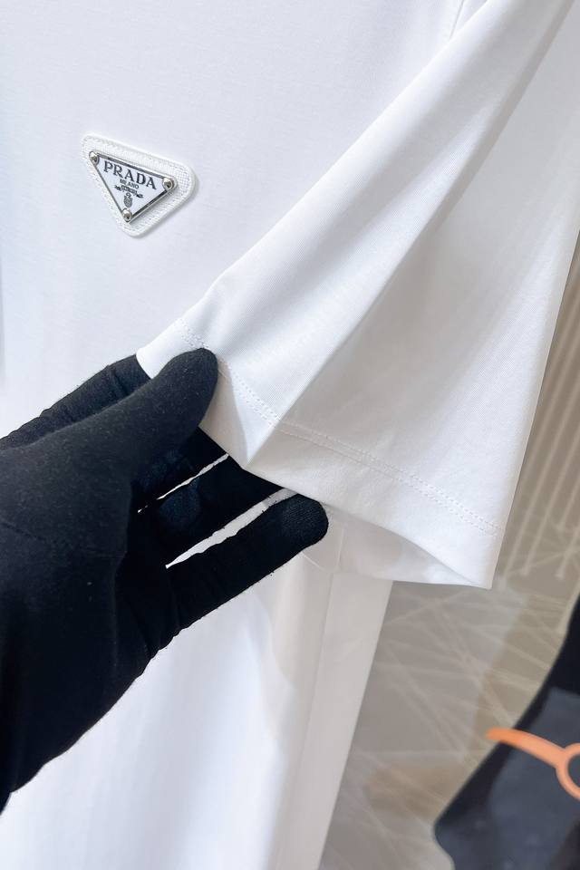 Prada 2025Ss spring and summer boutique short-sleeved T-shirt official website synchronized high-end quality customized imported mercerized cotton fabrics, top factory craftsmanship, fashionable big brand printing and hot diamond Logo design, soft and delicate to the touch, skin-friendly and comfortable to wear, versatile and casual upper body, very good handsome trendy men must-have normal size: M-3Xl maximum 190 pounds!