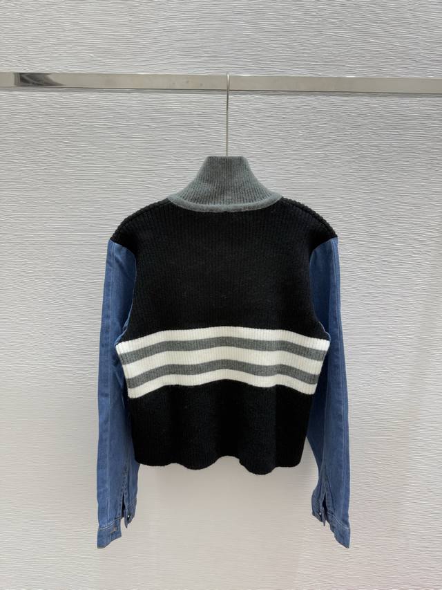 P's early autumn new color matching striped high collar and knitted long sleeves
