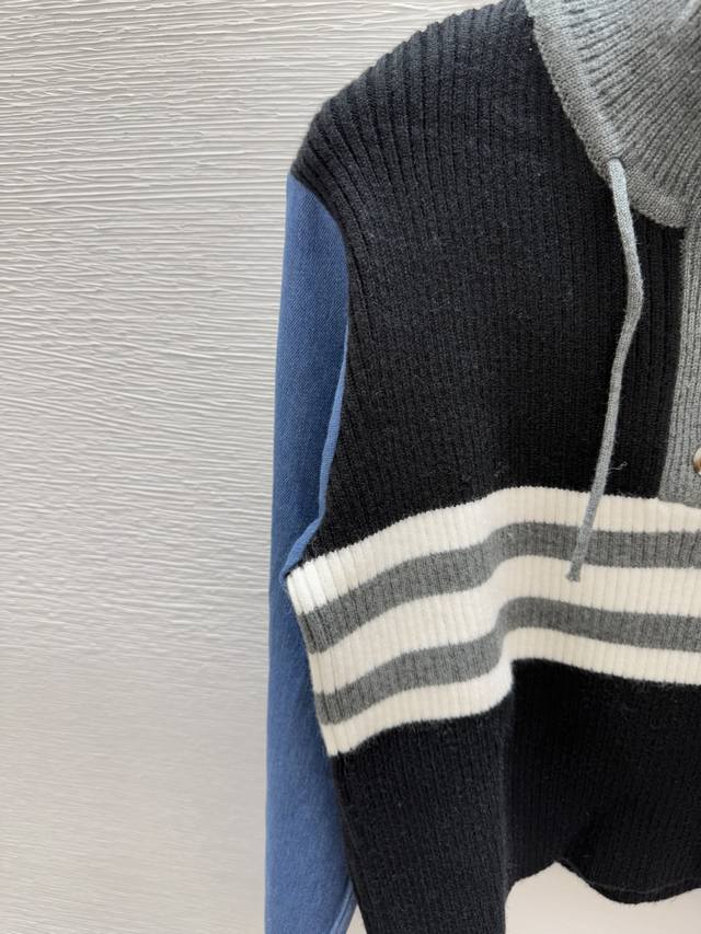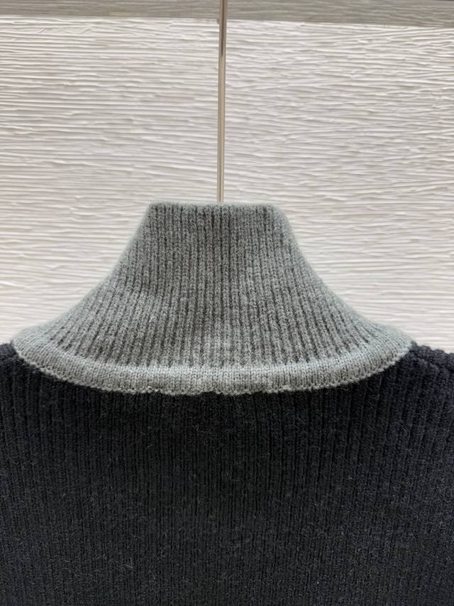 / P's early autumn new color matching striped high collar and knitted long sleeves