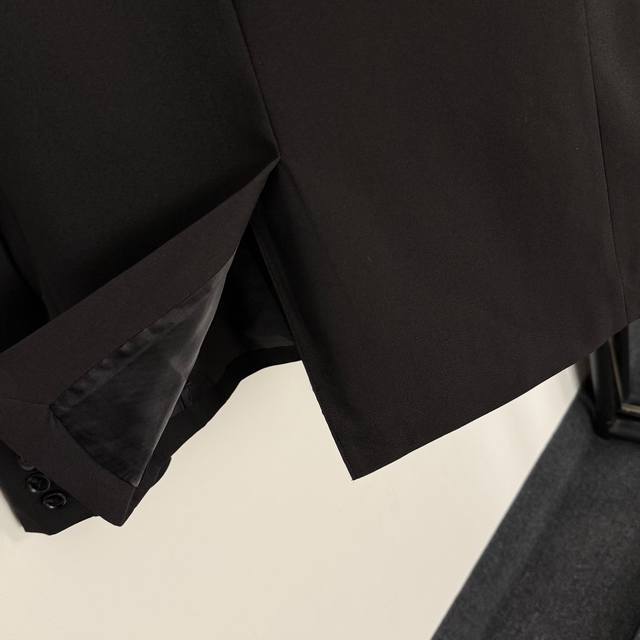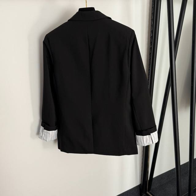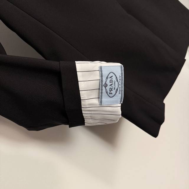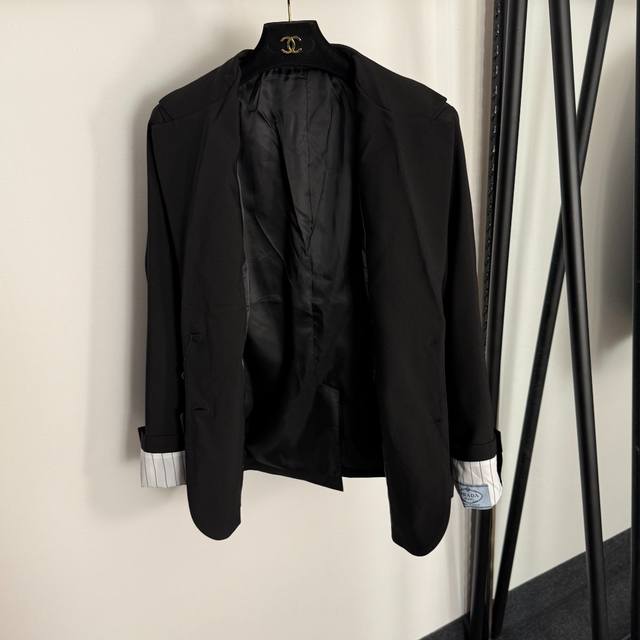 Style No. 20255014 Prad* new striped cuffs slim two-button long-sleeved suit jacket, black, Sml, M size: shoulder width 41, chest 106, sleeve length 66, length 70; weight: 0.550Kg; with shoulder pads