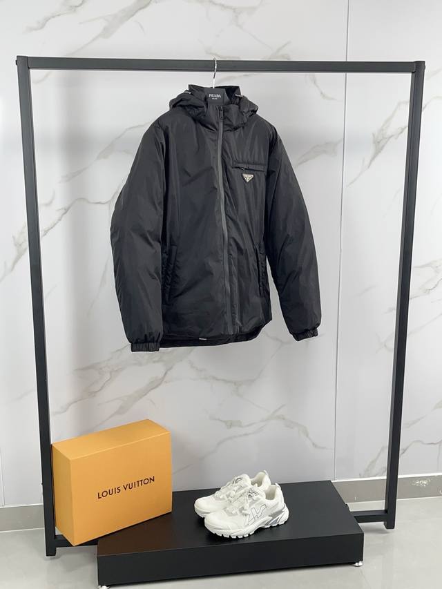 2025 New Prada Down Jacket. Prada woven jacket with down coat for winter, a favorite series for mature business people. Minimalist style. 90% white duck down jacket with comfortable and stylish fabric! The upper body is super stylish and handsome. The pattern is a three-dimensional cutting design. The whole piece is highly warm and has good resilience. The upper body is warm and stylish without feeling heavy. It is very wearable and does not look bloated. It can effectively prevent the invasion of cold wind! High quality first choice!