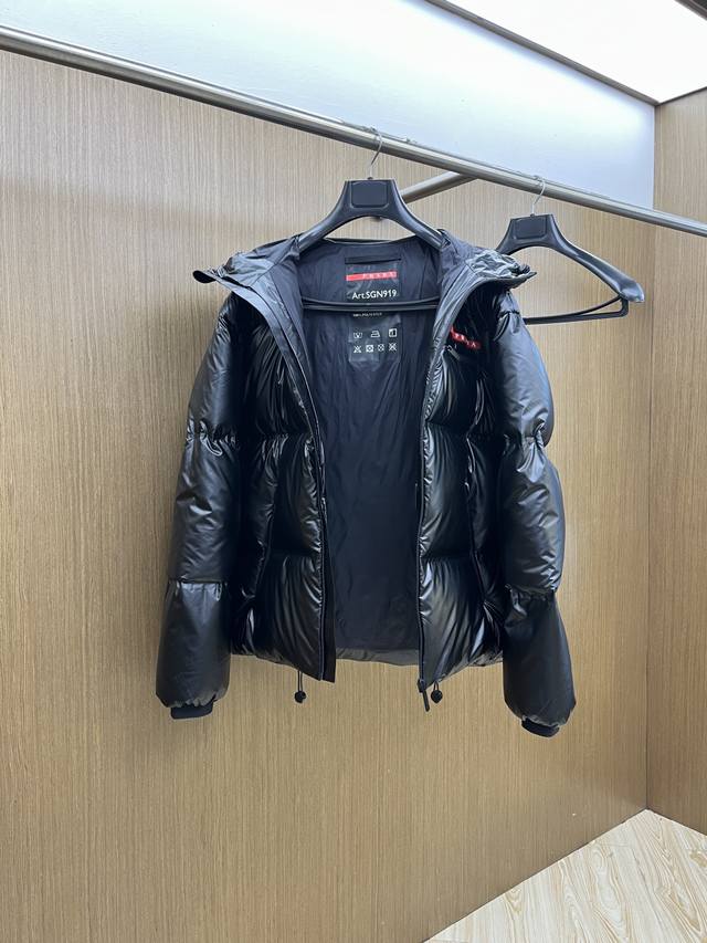 Autumn/Winter Prada High-Version 2025 Autumn/Winter New Fashionable Casual Down Jacket with Non-Removable Hood. Every detail showcases high-end craftsmanship. The structural cut design allows for diverse masculine looks. Slim and tailored, it meets the current trend of layering. A versatile style for everyday wear. Sizes: 48-56.