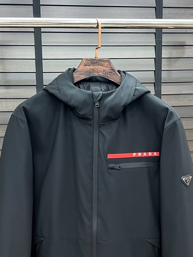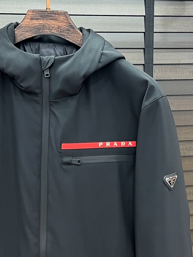 Feather D-70 Prada Autumn/Winter 25 Red Stripe Collection Hooded Mid-Length Jack