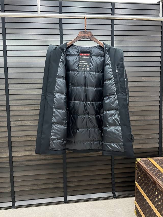 Feather D-70 Prada Autumn/Winter 25 Red Stripe Collection Hooded Mid-Length Jacket
