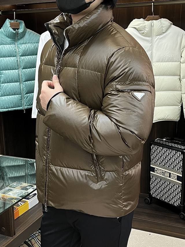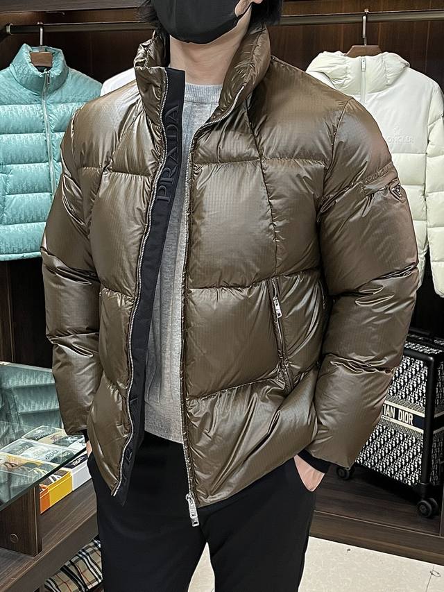 Featured Prada 2025 latest fashion designer down jacket, Prada stand-collar down coat, top-tier light luxury down jacket for winter, best-selling down jacket, filled with 90# white goose down, every detail shows the craftsmanship of the high-end structural tailoring design to showcase the diverse image changes of men, slim and neat, well-fitting, meets the current trend of multi-layer dressing, a versatile style for everyday life! DDD Colors: Black, Brown DDD Sizes: M-3XL DDD H2025 New Arrival DDD Fzy DDD