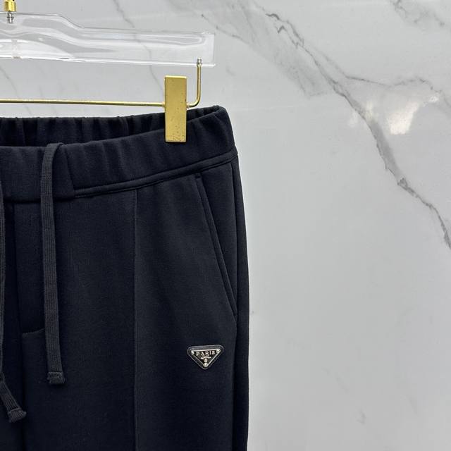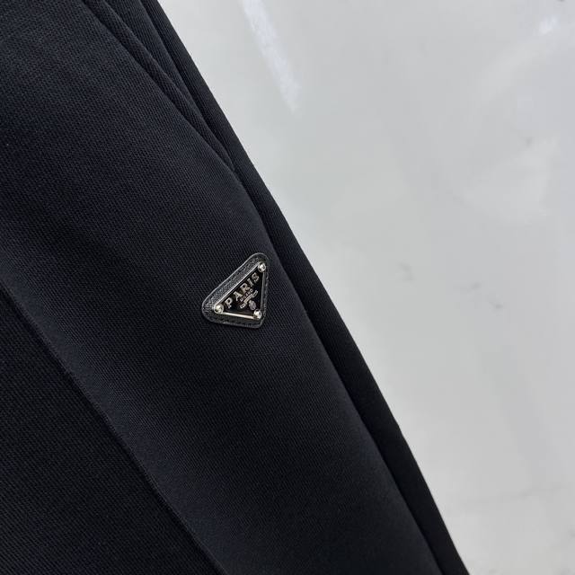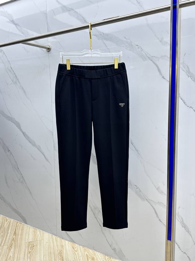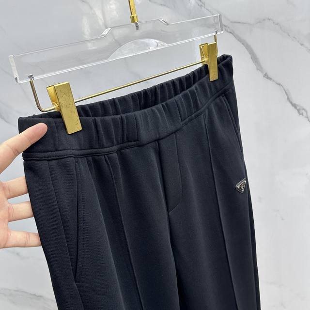 High-quality Prada 2025 Fall/Winter new casual pants featuring the classic brand metal logo. High-end version. Custom fabric for breathability and comfort. Exquisite detailing and workmanship, featuring brand design elements, embodying high quality. Soft and smooth feel! Casual cut with a flat-cut hem. A superb upper body fit! Sizes: M-3Xl