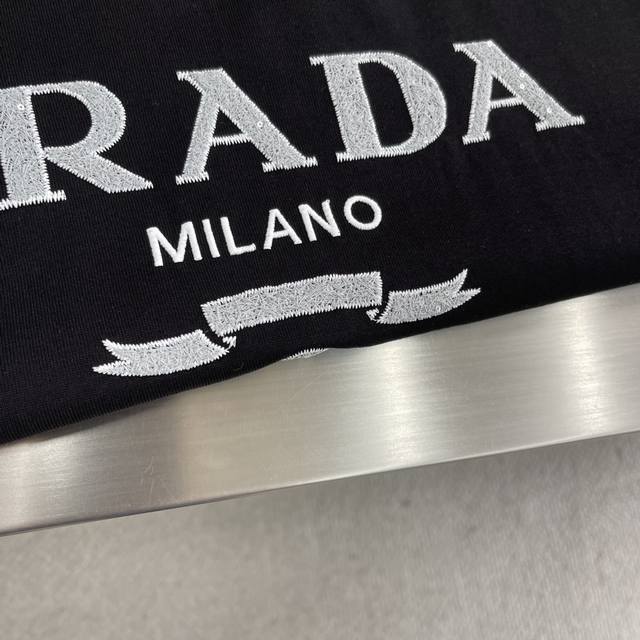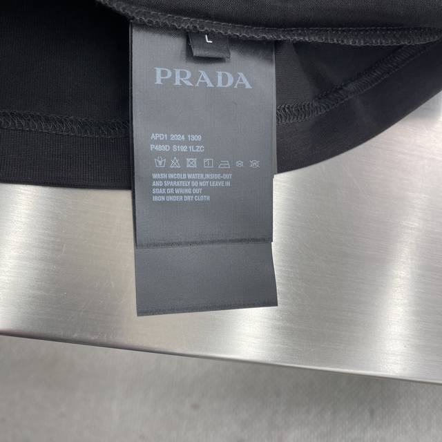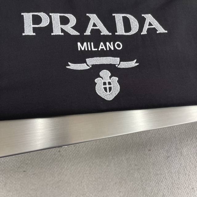 Prad 2025 Spring and Summer New Release Counter Latest Short Sleeve Round Neck T-shirt High-end Custom Design Avant-garde Fashion! Brand Logo Heavy Craftsmanship Design High-end Custom Mercerized Long Staple Cotton Fabric. Soft to the Touch. Comfortable to Wear. Counter-level Exquisite Sewing. Fine Workmanship. The Upper Body Effect is Invincible and Handsome! A Must-Have for Men!