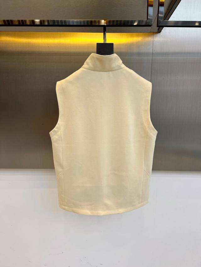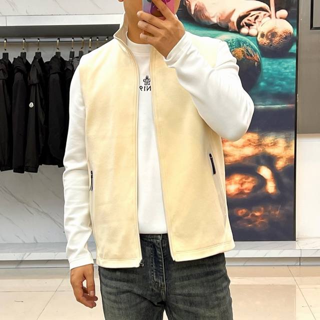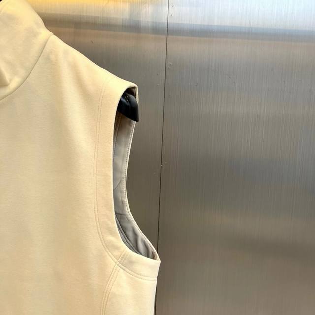 Prad, 25S new men's vest for autumn and winter. This sleeve vest reconstructs the dressing philosophy with three-dimensional tailoring and neat lines. The stand-up collar design extends the neck contour, and the metal zipper on the front is like a sharp brushstroke, breaking the quietness of the soft color. The double-sided slant pockets are cleverly integrated into the side curves, combining practicality and structural beauty. The high-count cotton fabric maintains a crisp structure, is soft and flexible to the skin, and is breathable and skin-friendly. Between the dark gray metal background and the pure white base, it reflects the high-level tension of minimalism.