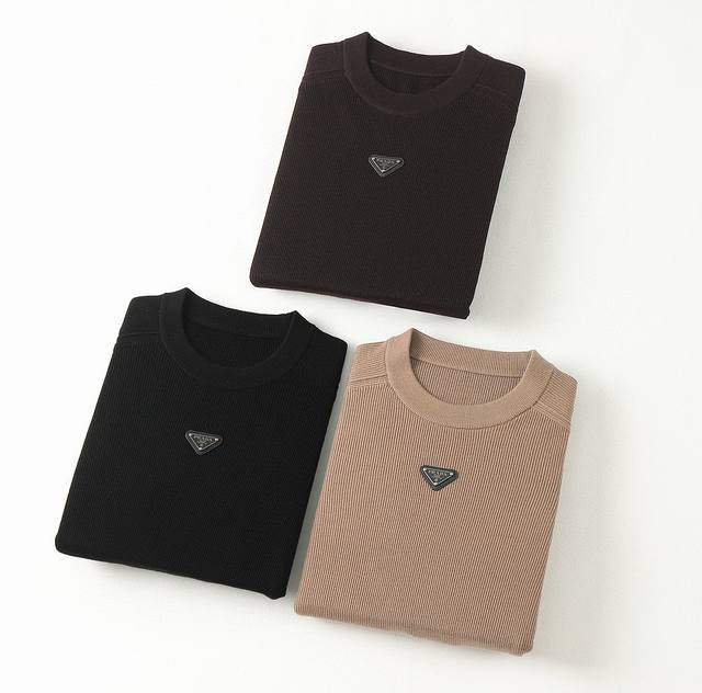 prad Prada's Fall/Winter 25 New Arrival - Men's Wool Knit Crew Neck Pullover Sweater. This simple, timeless design exudes elegance and creates a stylish, sophisticated look. The solid-color outerwear creates a seamless, effortless look. The overall design is truly sophisticated, reinterpreting the brand's classic elements with a fresh twist. It's the perfect choice for both spring, fall, and winter wear alone or as a layer. The regular fit ensures exceptional versatility, making it perfect for both business and camping trips. This sweater is meticulously woven from imported 50% wool and 50% acrylic yarn. This premium Australian Merino wool boasts a lustre and smoothness unmatched by other wools, with fibers as fine as 1/10 of a human hair, eliminating the harsh, wiry feel of wool. The entire fabric is crisp, light, soft, and has a high density, which allows the yarn to have a strong rebound and will not deform after long-term wear. It has a soft, wrinkle-resistant, non-pilling, tight and strong woven surface with a delicate texture. It is hand-sewn by a seamstress with more than 10 years of experience through 14 processes, stitch by stitch. Both sides are sewn with wool, which is soft, delicate and elastic, and does not prick people, pill or shrink.