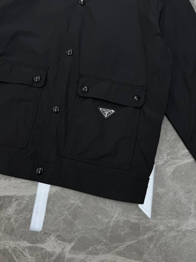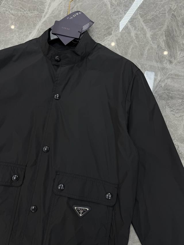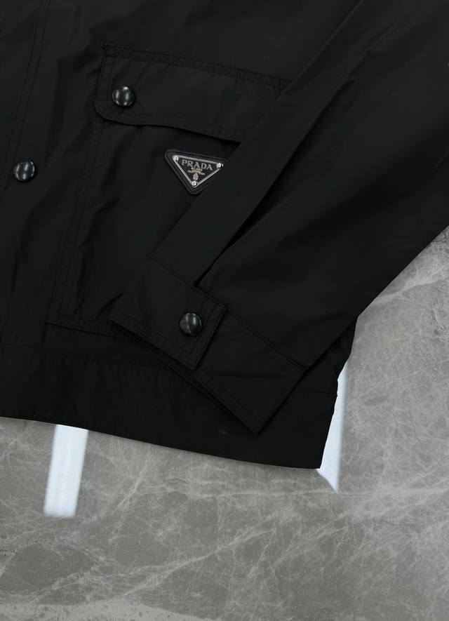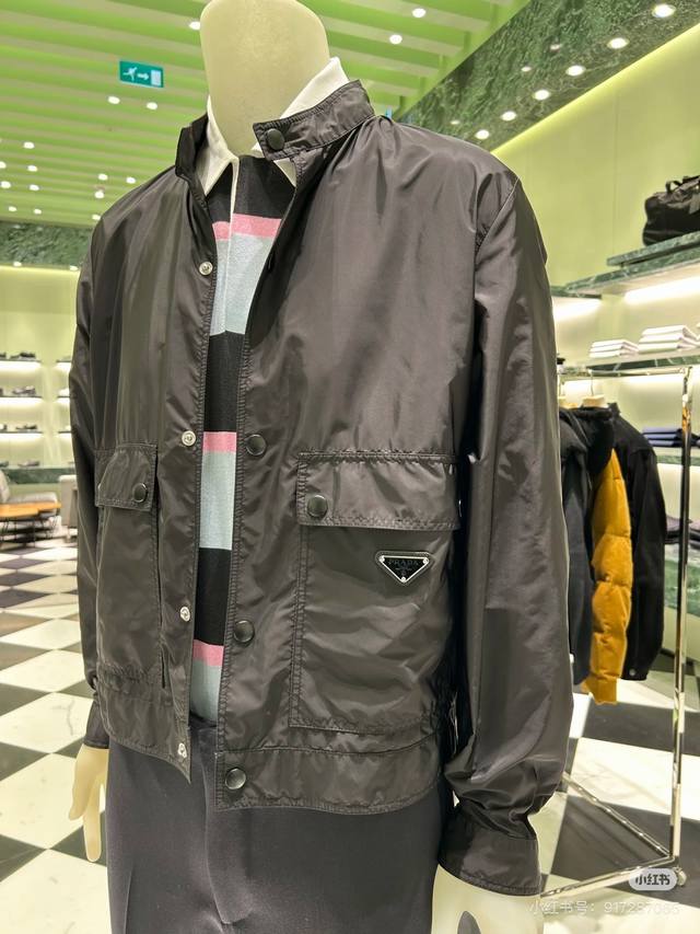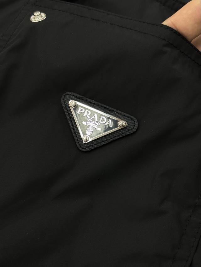 prad* Prada's new 2025 collection. This lightweight, UV-resistant, high-strength stretch jacket is a must-have for outdoor use, made from technical fabric. We release a new jacket in this fabric every year, and regular customers know it's incredibly comfortable. Made from 76% nylon and 24% spandex , it's smooth on the surface but soft to the touch. This is a super exclusive 2025 limited edition! Color: Black. European sizes: M-3Xl