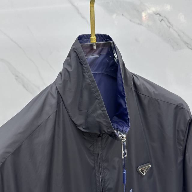 prad* Prada's new Fall/Winter 2025 jacket features a stand-up collar and is reversible. This runway-fresh piece is in impeccable condition, comfortable and stylish. Made from eco-friendly recycled nylon, it boasts rich, alluring colors. Its striking design effortlessly elevates your fashion sense, and the meticulous craftsmanship and meticulous seams create a truly stylish look. A masterpiece from a renowned designer! It's effortlessly stylish and effortlessly stylish! Hei's three standard logos are available. Sizes: S-Xxl