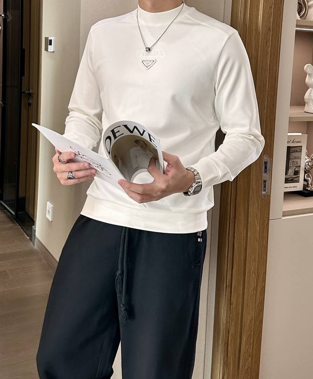 Prada 2025 Fall/Winter New Long-Sleeve Shirt, custom fabric, unique logo design, excellent comfort and breathability, soft, wrinkle-resistant, elastic and with excellent drape. Stylish whether worn alone or as an inner layer, it embodies a luxurious, elegant, and sophisticated style, showcasing exceptional masculine taste. Visually stunning, high-end, simple yet fashionable, a must-have for both casual and business occasions! Sizes M-3XL