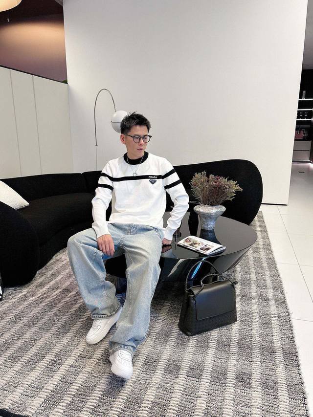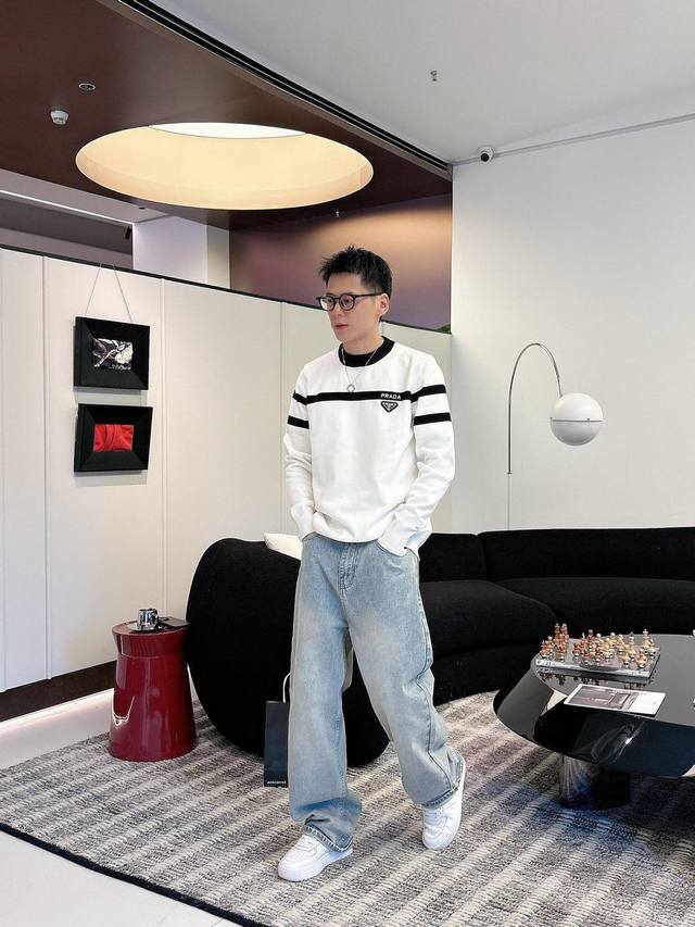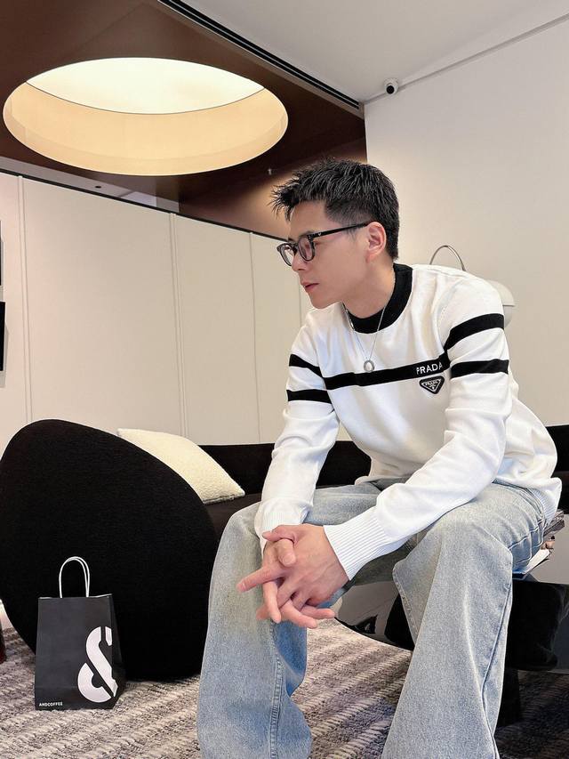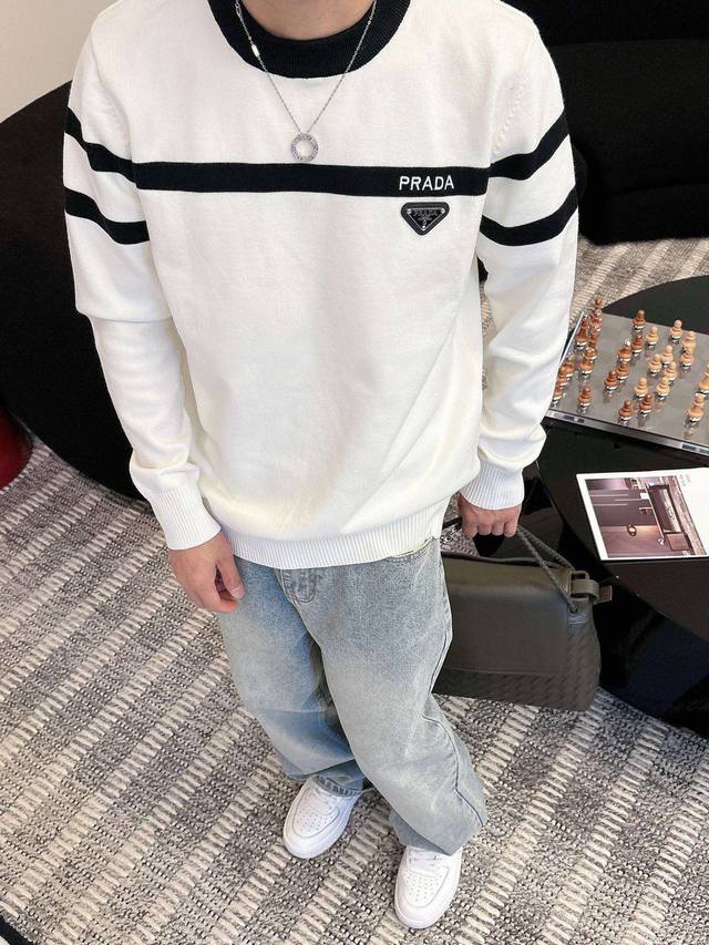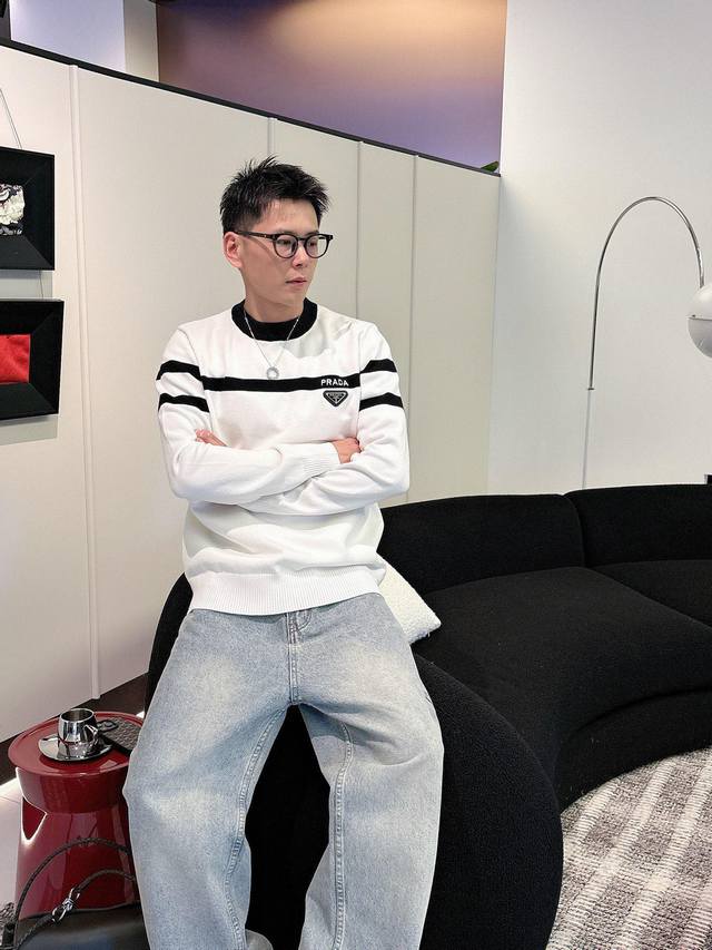 Prada 2025 Fall/Winter Wool Blend Pullover Knit Sweater. The details highlight its quality. The overall design is stylish and modern. The fitted cut and slightly fitted neckline make the wearer look younger and more fashionable. The fabric is a custom-woven wool blend, easy to care for, with a wool-like texture that is comfortable and warm. It looks high-end while maintaining a good drape. Sizes M-3XL DDD