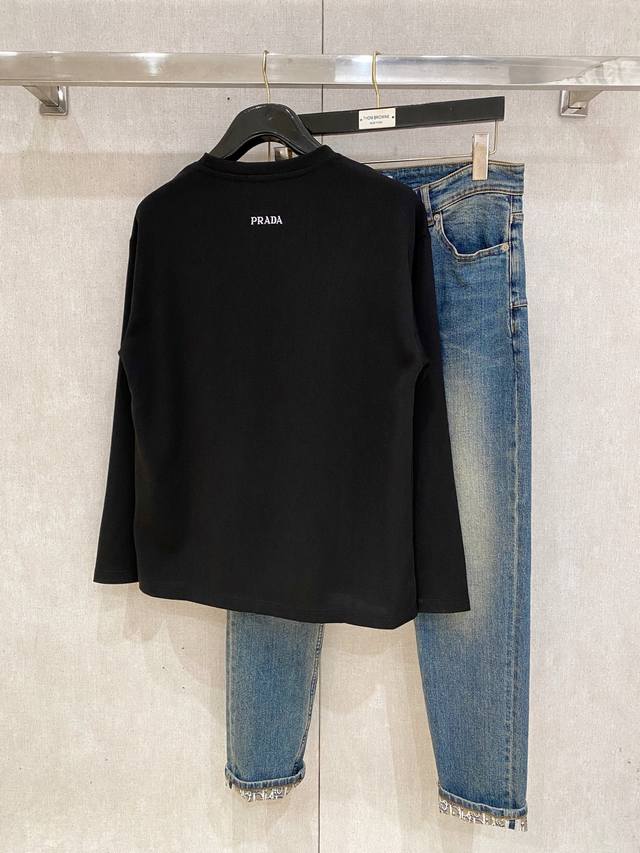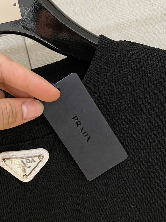 Prada 2025 New Autumn/Winter Knitted Wool Sweater. High-quality Italian imported wool blend fabric, high-density knit, fashionable and versatile sweater, very stylish. Classic logo jacquard design. Durable and not easily deformed, the fit can easily be worn with various styles, a classic fashion style that is sought after year. All three tags are complete. High-quality bulk goods. Sizes: M-3XL DDD