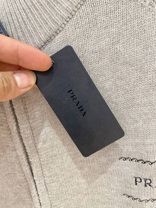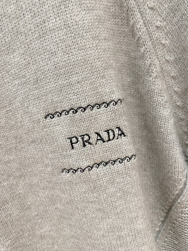 Prada 2025 New Autumn/Winter Knitted Wool Sweater. High-quality Italian imported wool blend fabric, high-density knit, fashionable and versatile sweater, very stylish. Classic logo jacquard design. Durable and not easily deformed, the fit can easily match various styles, a classic fashion style that is sought after year. All three tags are complete. High-quality bulk goods. Sizes: M-3XL DDD