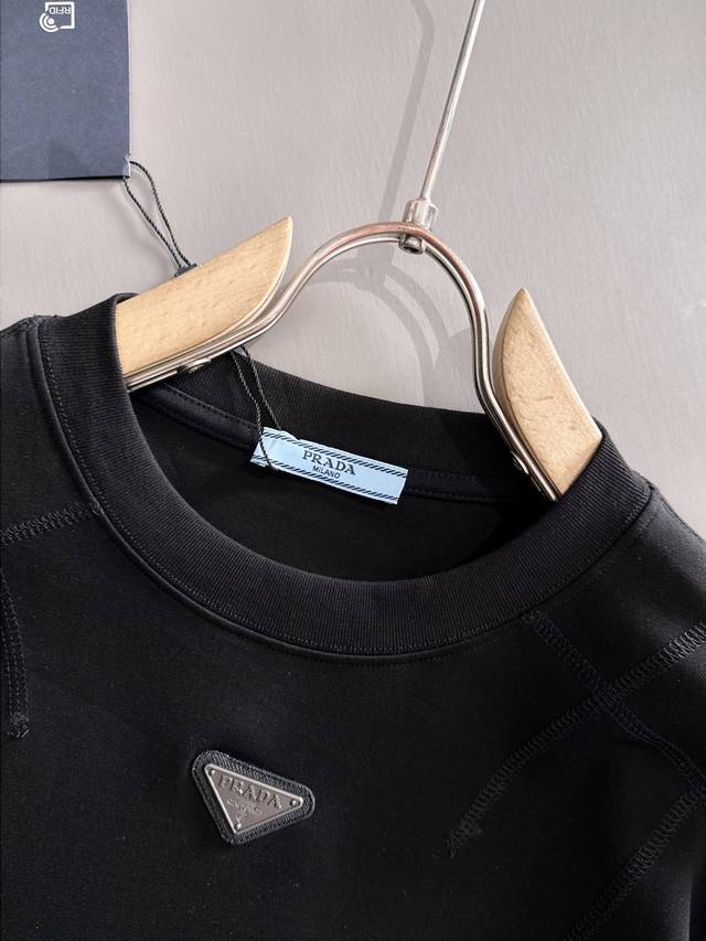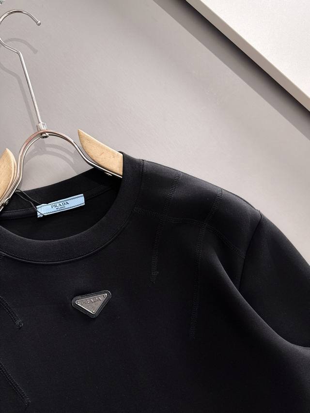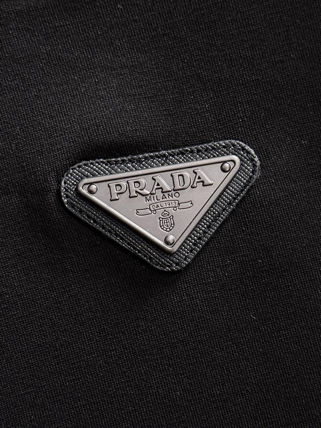 prada 2025 new woven patchwork half-sleeve custom triangle logo unisex long-sleeved T-shirt