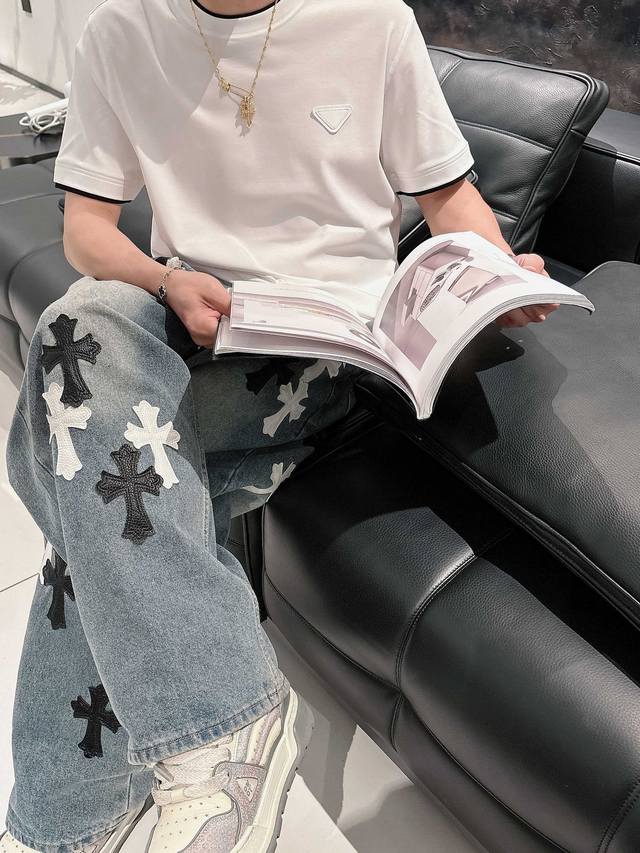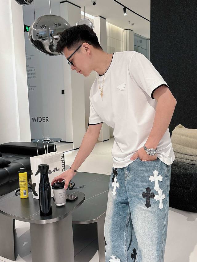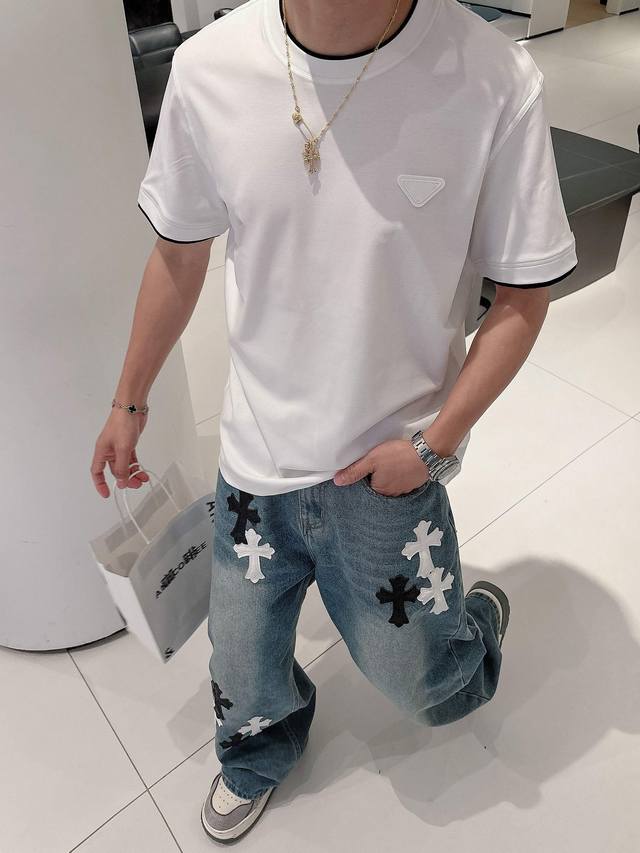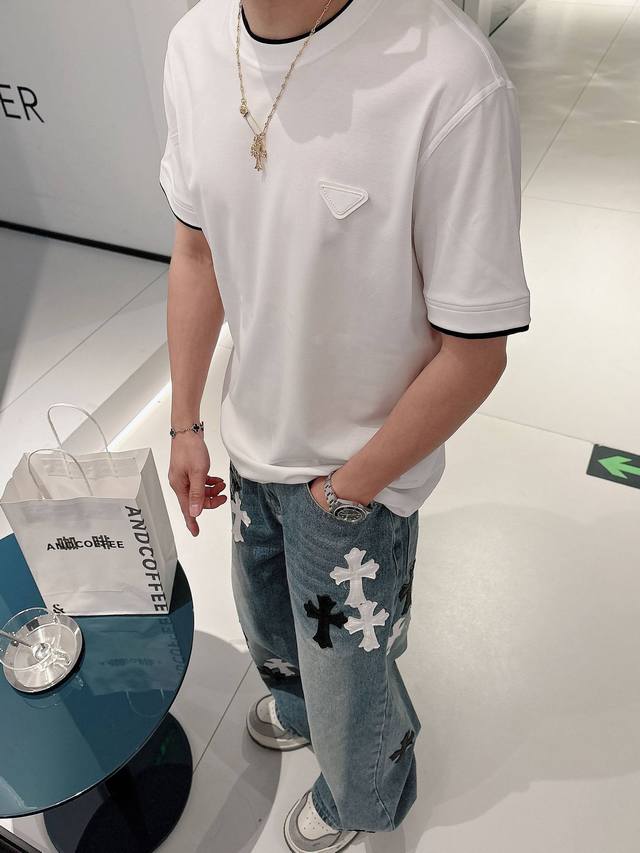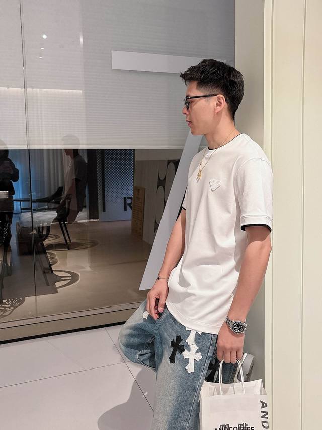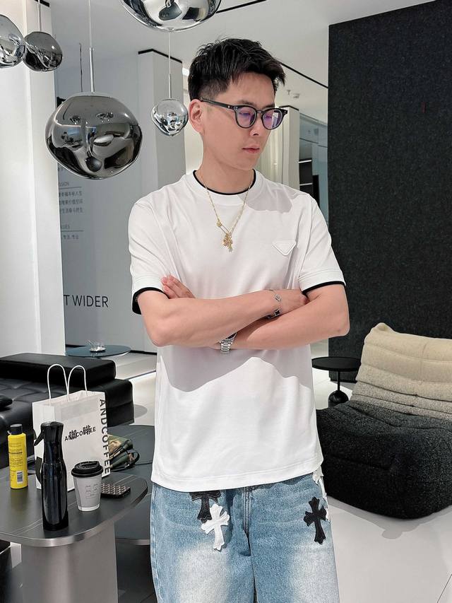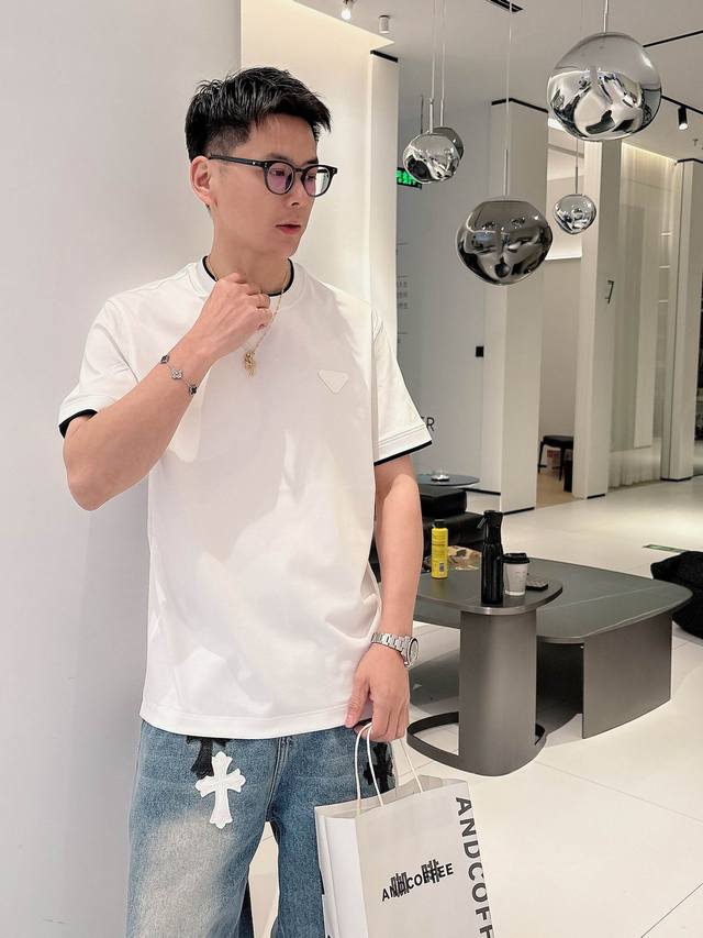 Prada 2025 Spring and Summer New Releases Newest Short-sleeved Round Neck T-shirt High-end Custom Design Avant-garde Fashion! Brand Logo Heavy Craftsmanship Design High-end Custom Imported Liquid Ammonia Pima Cotton Fabric. Soft to the Touch. Comfortable to Wear. Exquisite Sewing at the Counter Level. Fine Workmanship. Looks Super Handsome on the Body! A Must-Have for Men!