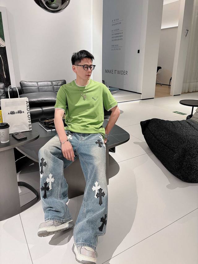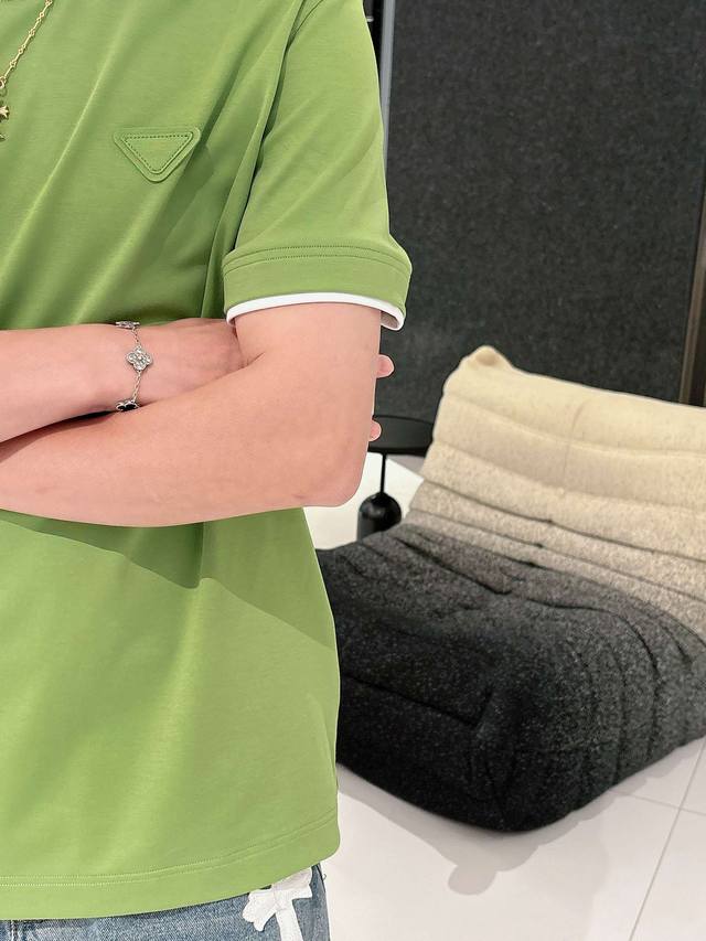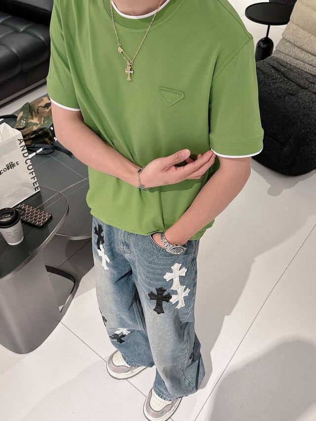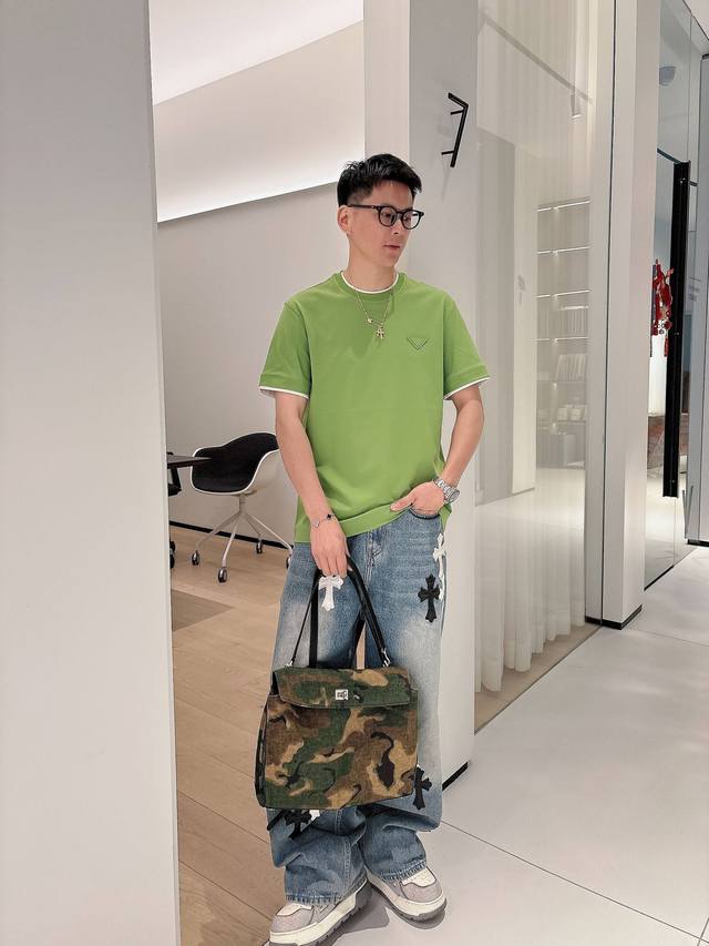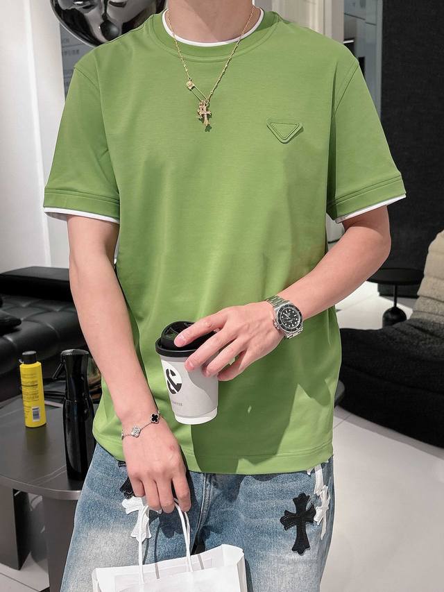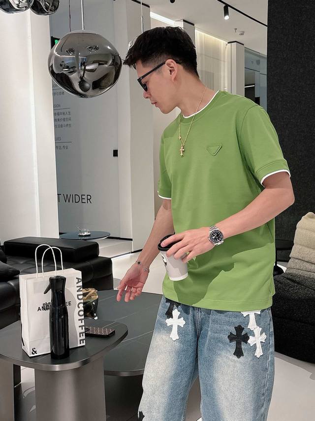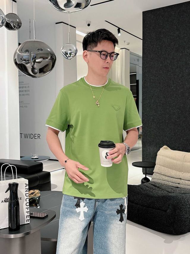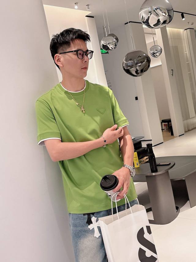 Prada 2025 Spring and Summer New Releases Newest Short-sleeved Round Neck T-shirt High-end Custom Design Avant-garde Fashion! Brand Logo Heavy Craftsmanship Design High-end Custom Imported Liquid Ammonia Pima Cotton Fabric. Soft to the Touch. Comfortable to Wear. Exquisite Sewing at the Counter Level. Fine Workmanship. Looks Super Handsome on the Body! A Must-Have for Men!