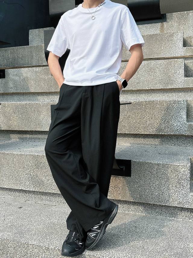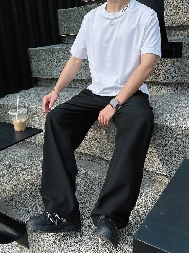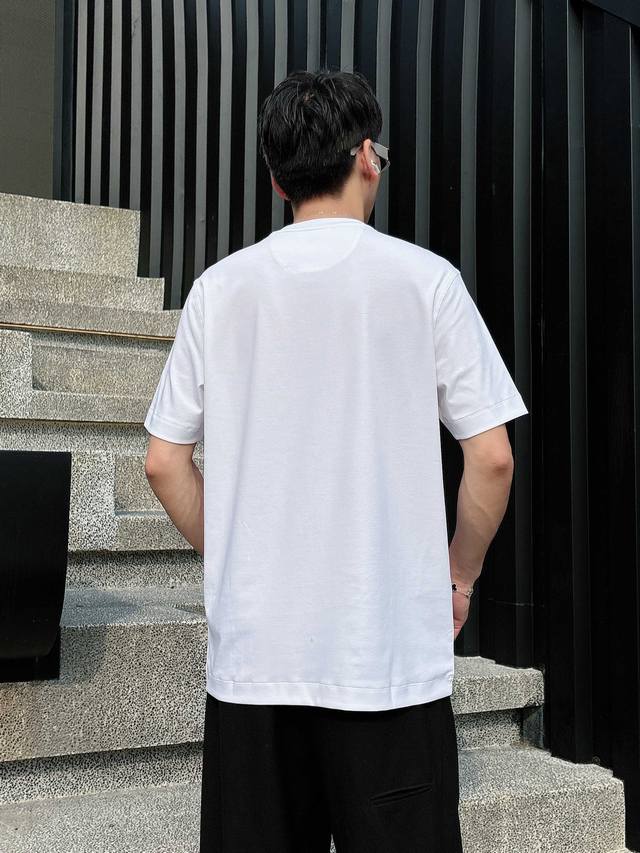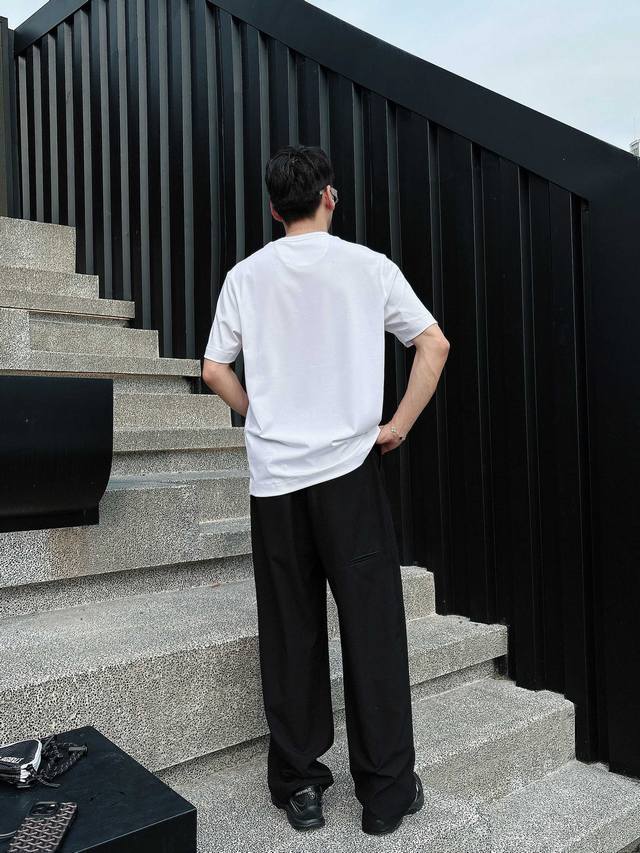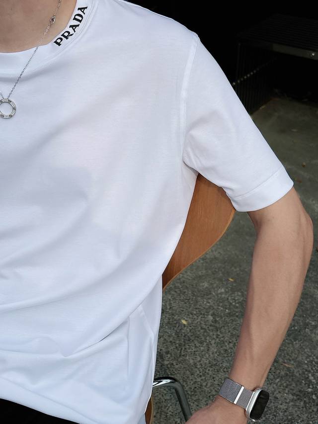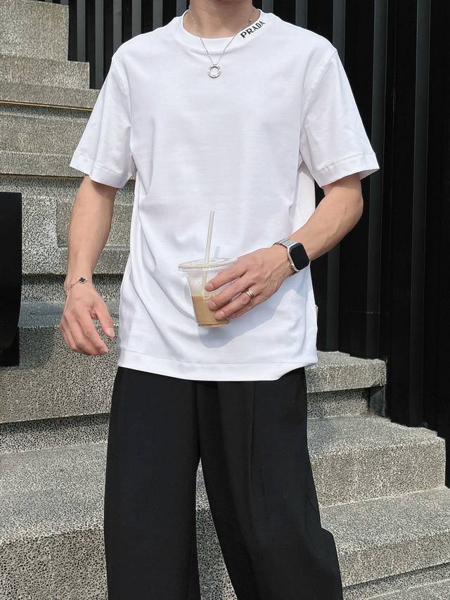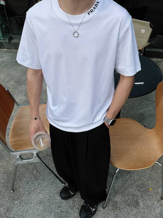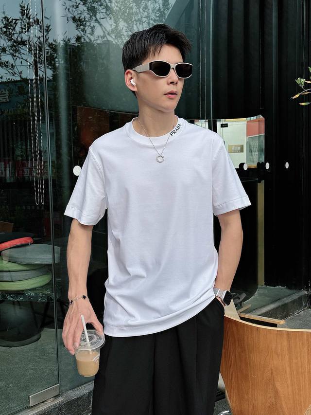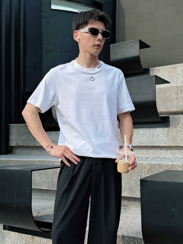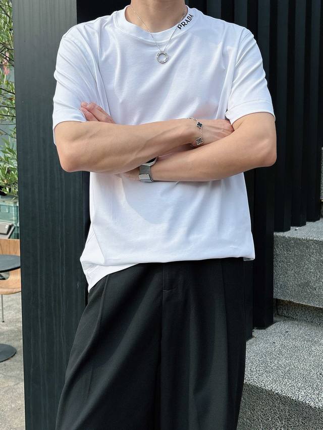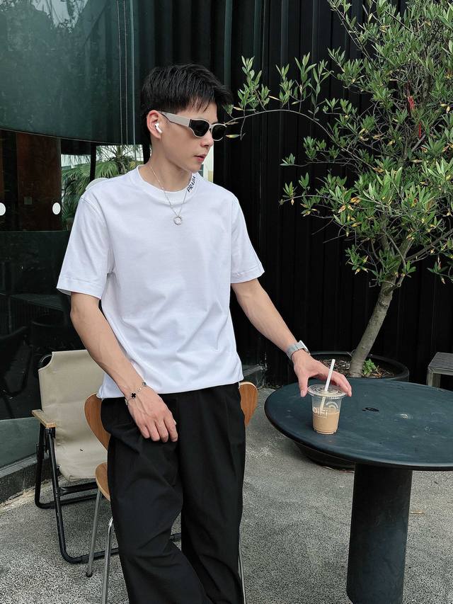 Prada 2025 Spring and Summer New Releases Newest Short-sleeved Round Neck T-shirt High-end Custom Design Avant-garde Fashion! Brand Logo Heavy Craftsmanship Design High-end Customized Liquid Ammonia Pima Cotton Fabric. Soft to the Touch. Comfortable to Wear. Exquisite Sewing at the Counter Level. Fine Workmanship. The Upper Body Effect is Invincible and Handsome! A Must-Have for Men!