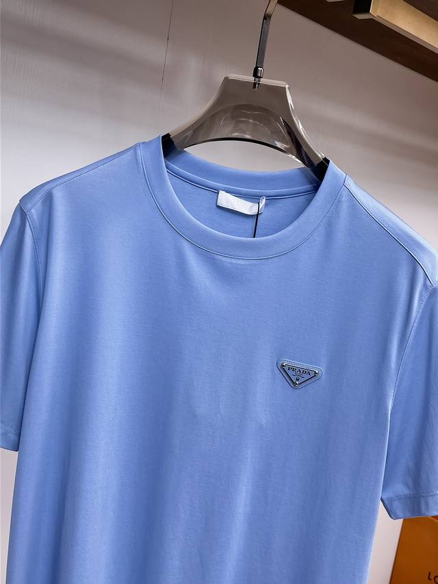 Prada 2025 Spring and Summer New Releases, the latest round neck short sleeves, high-end custom design, avant-garde and fashionable! Brand Logo, heavy craftsmanship design, high-end custom 100 double-sided mercerized cotton fabric. Soft to the touch. Comfortable to wear. Exquisite stitching at the counter level. Fine workmanship. The upper body effect is invincible and handsome! A must-have item for men! Size: M-3Xl