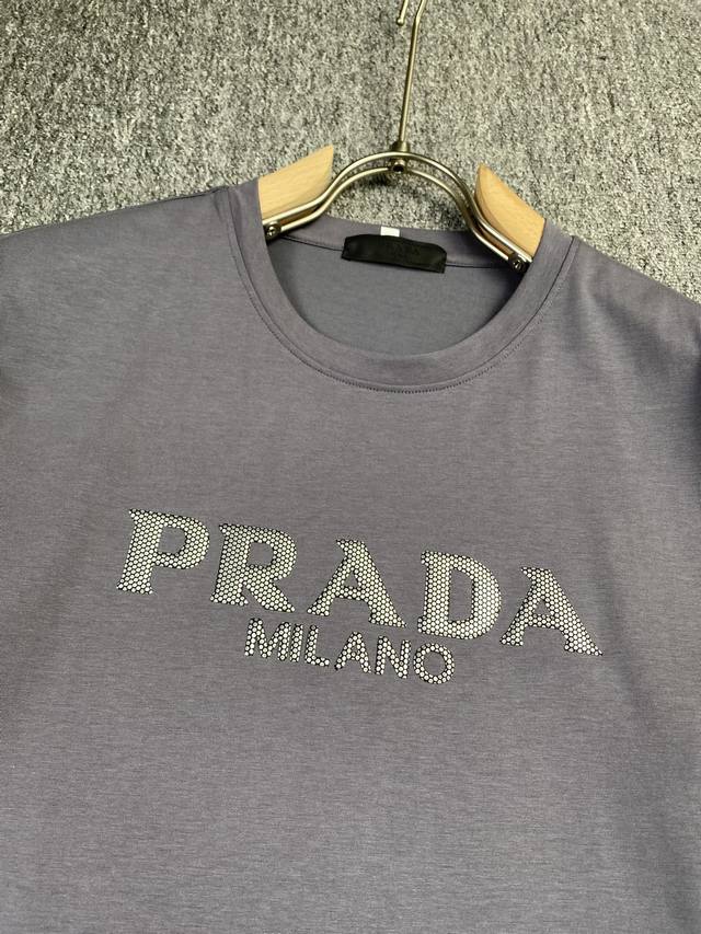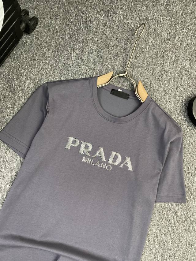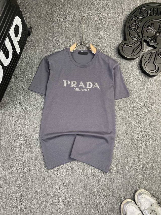 Prada 2025 Spring/Summer High-Quality Mercerized Cotton Short-Sleeve T-Shirt, M-6XL, suitable for up to 230 lbs. Top-quality original, meeting the latest craftsmanship requirements. High-end order specifications for stitching and workmanship. Super versatile, top-tier customization. The details, quality, and tailoring are all first-class. Made with imported mercerized cotton fabric! Stylish and versatile with a sophisticated color scheme. M-6XL. Please provide your height and weight when ordering.
