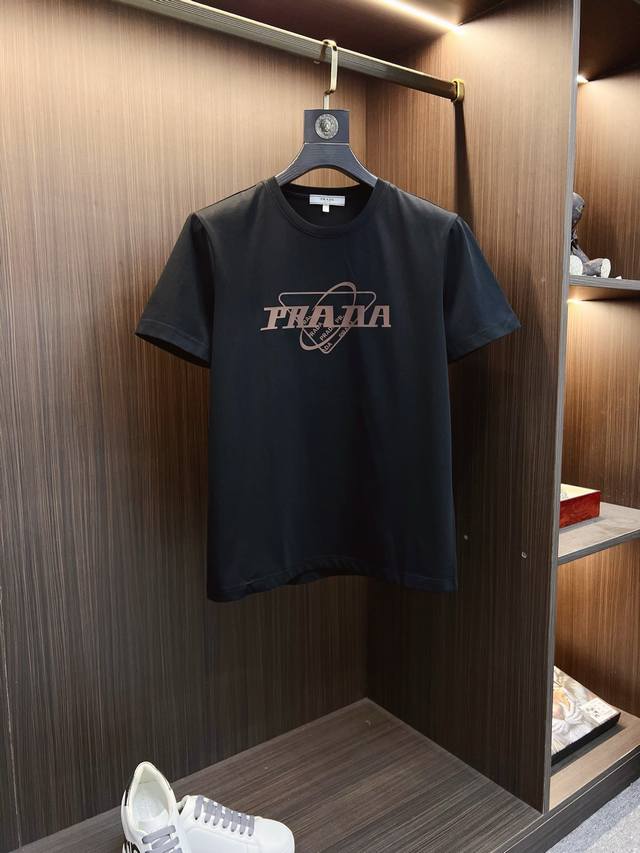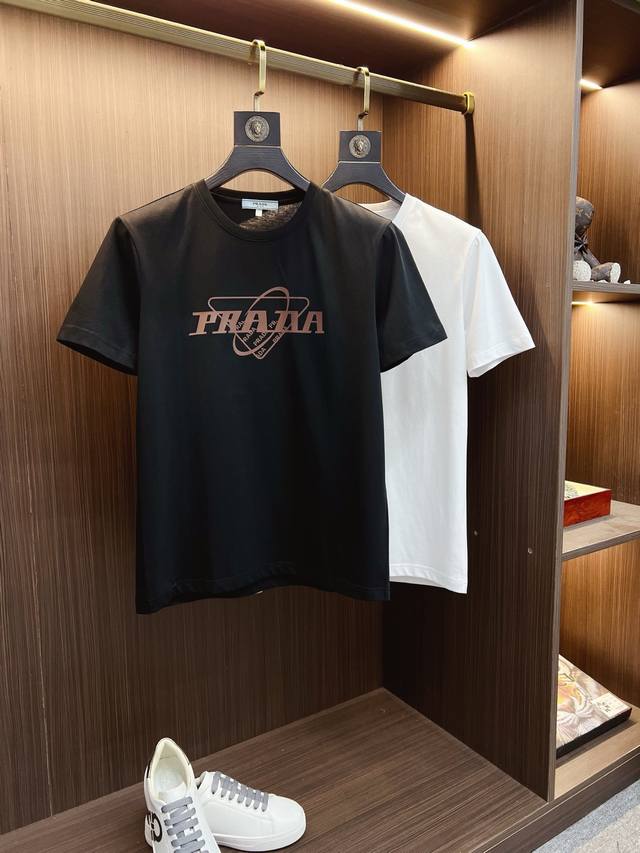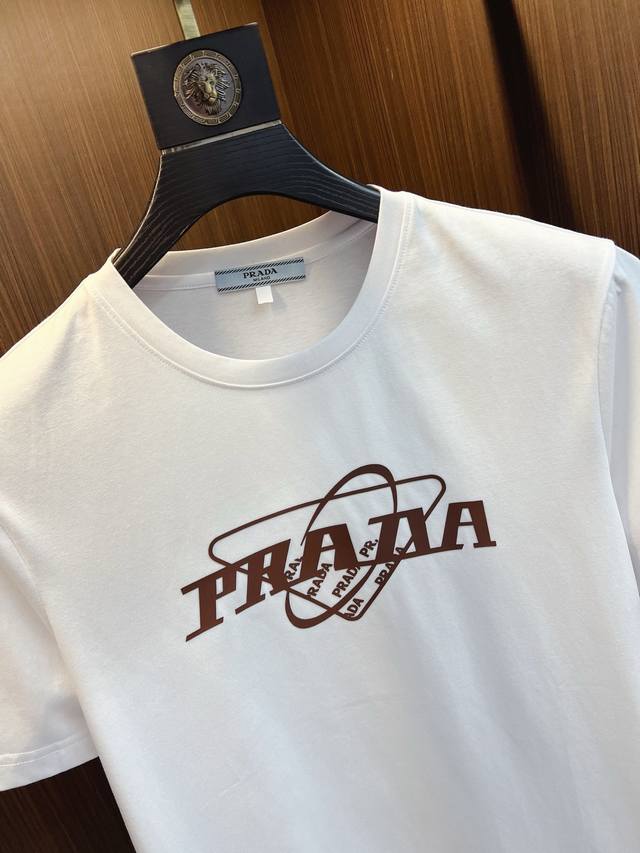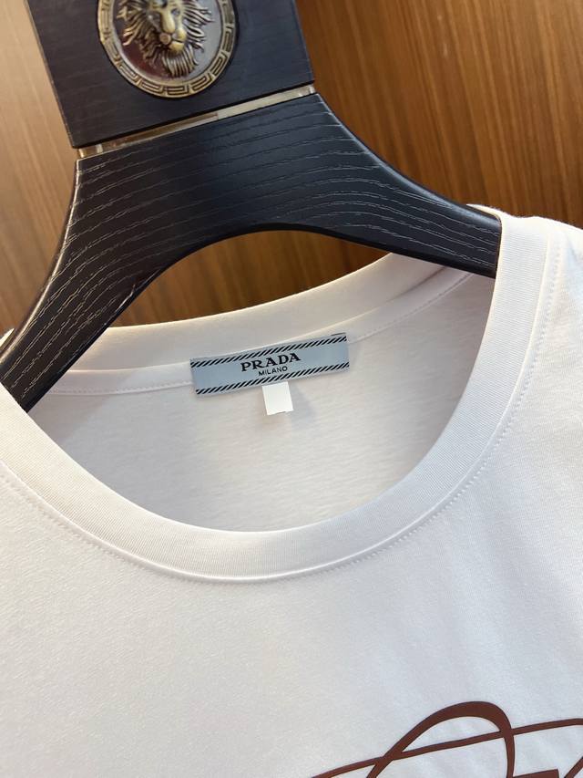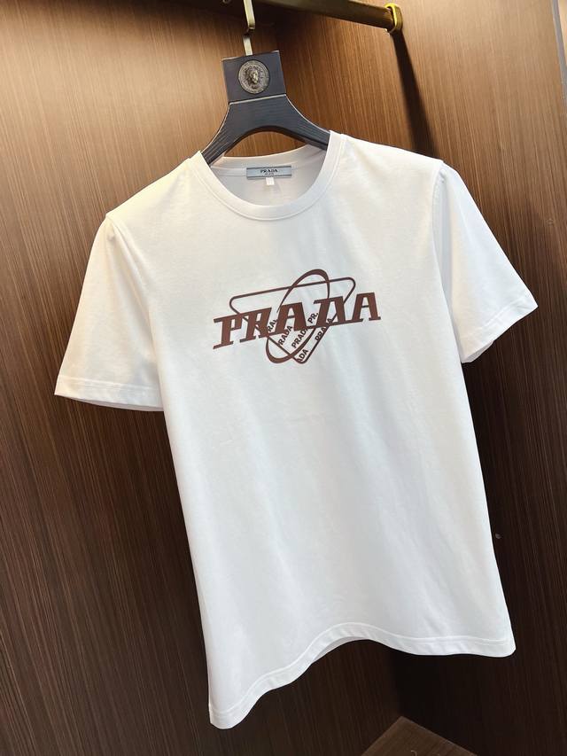 Prada 2025 Spring/Summer High-Quality Mercerized Cotton Short-Sleeve T-Shirt, Sizes M-6XL, suitable for up to 230 lbs. Top-quality original design, meeting the latest craftsmanship requirements. High-end order specifications for stitching and workmanship. Super versatile, top-tier customization. The details, quality, and tailoring are all first-class. Made with custom imported mercerized cotton fabric! Stylish and versatile color scheme. Order size M-6XL and provide your height and weight.